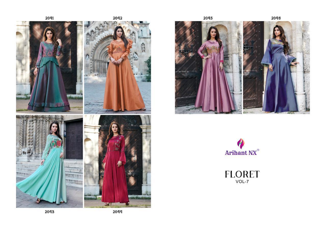 Buy Online Floret Vol 7 By Arihant Nx Series 2041 To 2046 Silk Designer Party Wear Gowns Wholesale Supplier Gujarat 6 Pcs of Full Catalogue at Wholesale Price. Looking for Floret Vol 7 By Arihant Nx Series 2041 To 2046 Silk Designer Party Wear Gowns Wholesale Supplier Gujarat Full Catalouge at Best Price? Buy Now Floret Vol 7 By Arihant Nx Series 2041 To 2046 Silk Designer Party Wear Gowns Wholesale Supplier Gujarat at Wholesale Rate of Rs 6270 with Total 6 Pcs from authroized dealer and supplier of ARIHANT NX Brand. Cost of Each piece is just only Rs 1045 which is very low and affordable price to resale the product in your retail store ,This is Surat based Wholesale Supplier & Dealer of ARIHANT NX Brand. Click on Brand name to Know more about ARIHANT NX Brand's products.Call or Whatsapp on 9898838984 for booking or enquiry