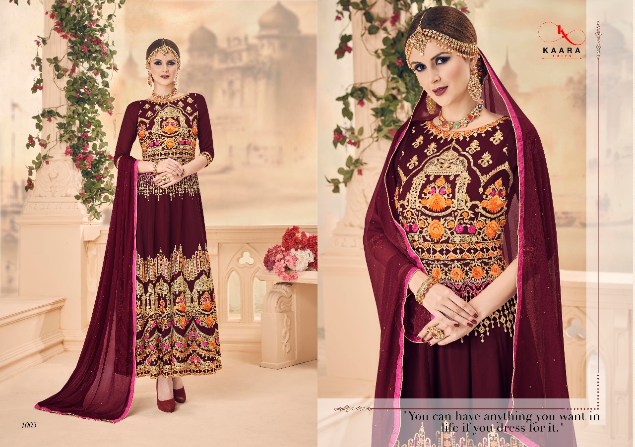 Buy Online Florisa By Kaara Suits Georgette Embroidered Anarkali Suits Wholesale Supplier And Dealer Surat 4 Pcs of Full Catalogue at Wholesale Price. Looking for Florisa By Kaara Suits Georgette Embroidered Anarkali Suits Wholesale Supplier And Dealer Surat Full Catalouge at Best Price? Buy Now Florisa By Kaara Suits Georgette Embroidered Anarkali Suits Wholesale Supplier And Dealer Surat at Wholesale Rate of Rs 6796 with Total 4 Pcs from authroized dealer and supplier of KAARA Brand. Cost of Each piece is just only Rs 1699 which is very low and affordable price to resale the product in your retail store ,This is Surat based Wholesale Supplier & Dealer of KAARA Brand. Click on Brand name to Know more about KAARA Brand's products.Call or Whatsapp on 9898838984 for booking or enquiry