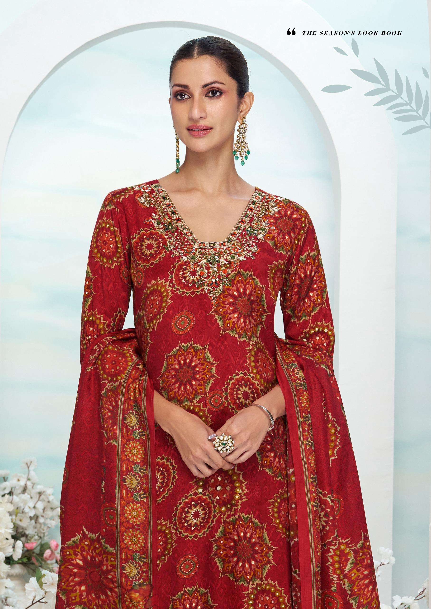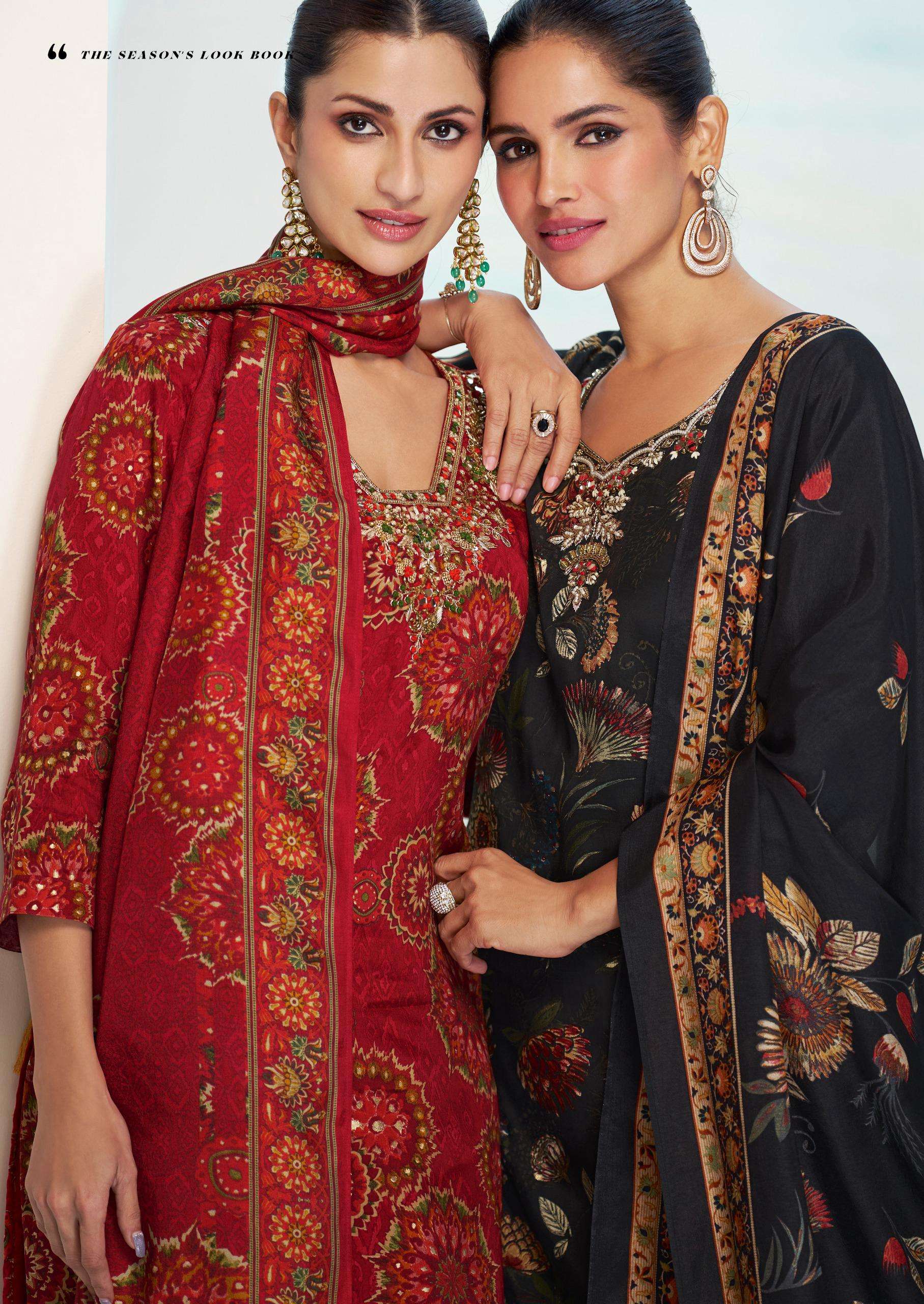 - Top: Mirror Handwork on Natural Crepe with Lining - Bottom: Handwork on Natural Crepe Pant with Pocket - Dupatta: Pure Viscose Print Dupatta with Tussle