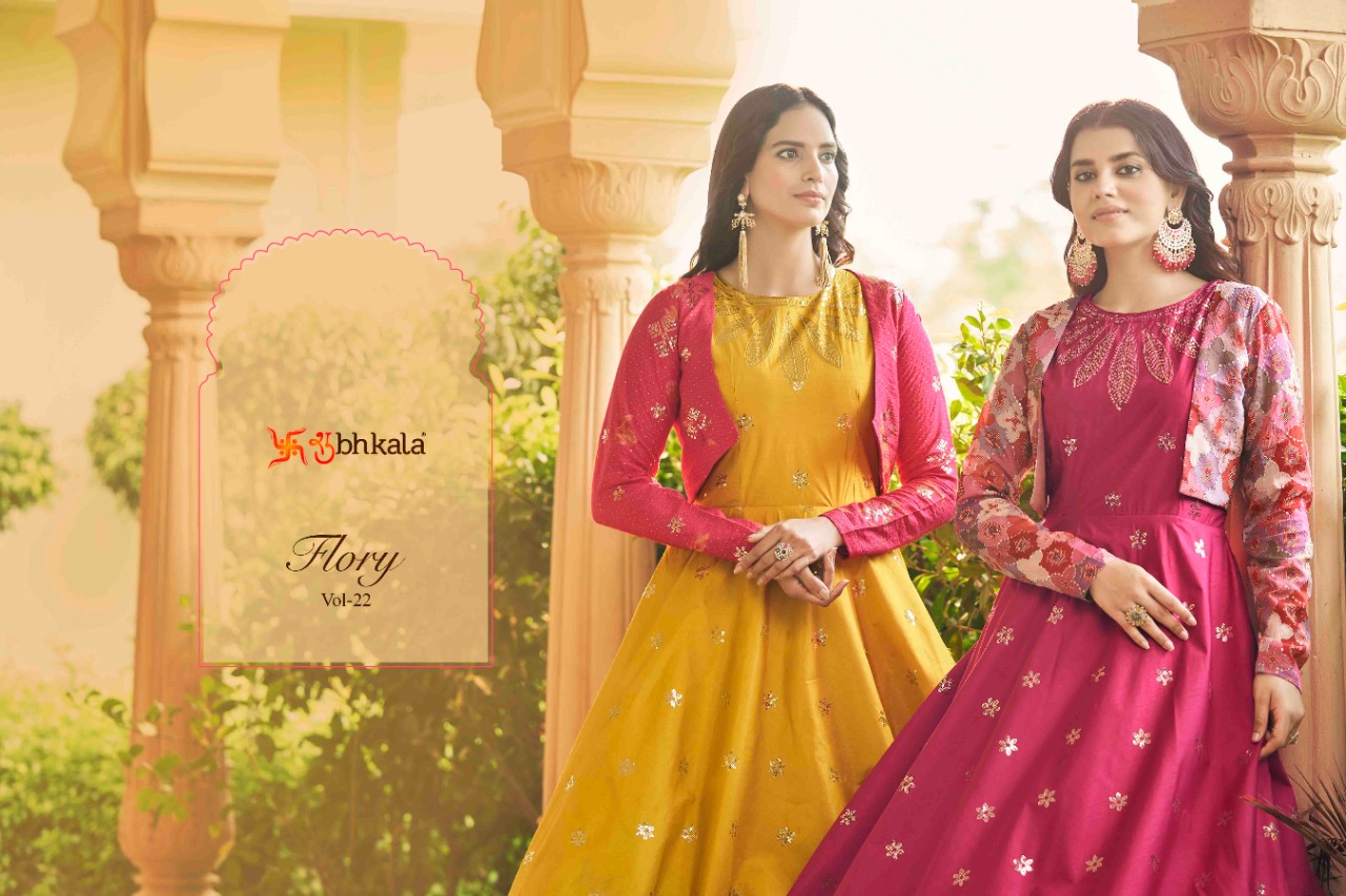 Flory Vol 22 By Shubhkala Designer Anarkali Gown With Koti Party Wear Collection Single And Set Stockiest And Supplier From Surat