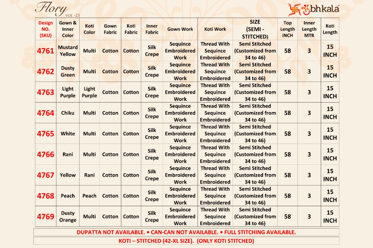 Buy Online Flory Vol 22 By Shubhkala Designer Anarkali Gown With Koti Party Wear Collection Single And Set Stockiest And Supplier From Surat 9 Pcs of Full Catalogue at Wholesale Price. Looking for Flory Vol 22 By Shubhkala Designer Anarkali Gown With Koti Party Wear Collection Single And Set Stockiest And Supplier From Surat Full Catalouge at Best Price? Buy Now Flory Vol 22 By Shubhkala Designer Anarkali Gown With Koti Party Wear Collection Single And Set Stockiest And Supplier From Surat at Wholesale Rate of Rs 14400 with Total 9 Pcs from authroized dealer and supplier of Brand. Cost of Each piece is just only Rs 1600 which is very low and affordable price to resale the product in your retail store ,This is Surat based Wholesale Supplier & Dealer of Brand. Click on Brand name to Know more about Brand's products.Call or Whatsapp on 9898838984 for booking or enquiry