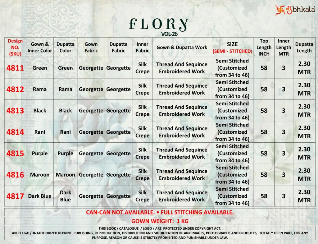 Buy Online Flory Vol 26 By Shubhkala Designer Anarkali Gown Collection Single And Set Stockiest And Supplier From Surat 7 Pcs of Full Catalogue at Wholesale Price. Looking for Flory Vol 26 By Shubhkala Designer Anarkali Gown Collection Single And Set Stockiest And Supplier From Surat Full Catalouge at Best Price? Buy Now Flory Vol 26 By Shubhkala Designer Anarkali Gown Collection Single And Set Stockiest And Supplier From Surat at Wholesale Rate of Rs 11200 with Total 7 Pcs from authroized dealer and supplier of Brand. Cost of Each piece is just only Rs 1600 which is very low and affordable price to resale the product in your retail store ,This is Surat based Wholesale Supplier & Dealer of Brand. Click on Brand name to Know more about Brand's products.Call or Whatsapp on 9898838984 for booking or enquiry