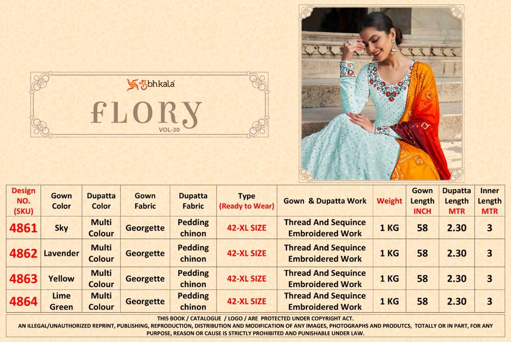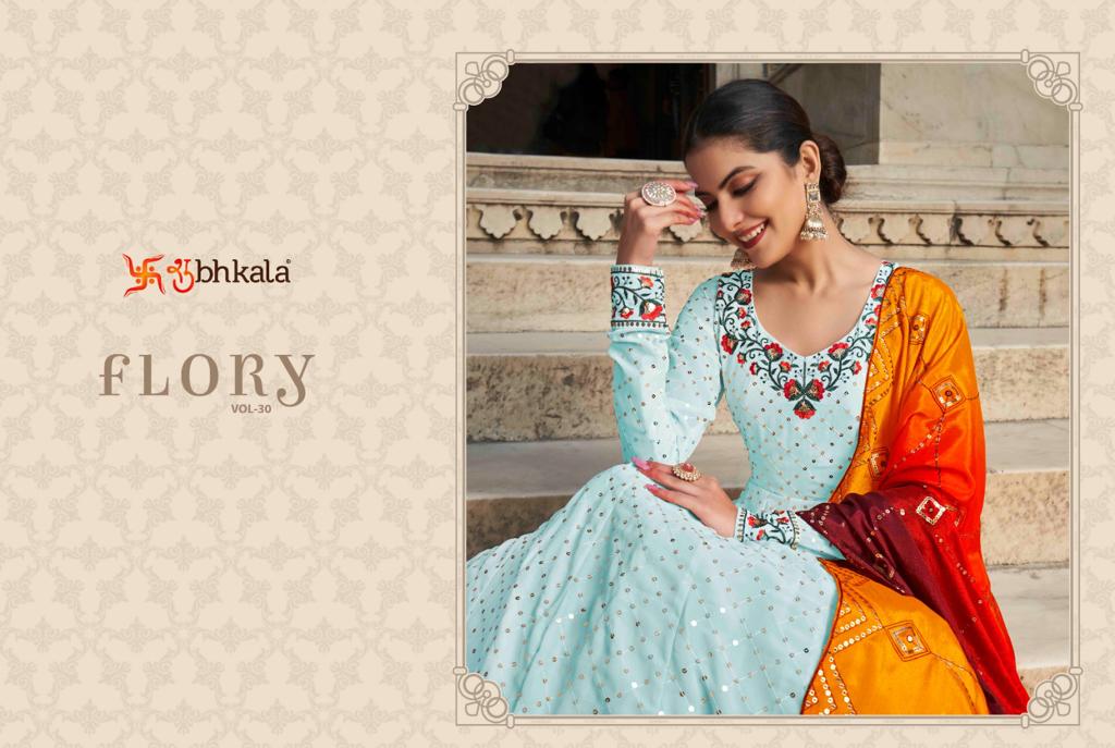 Flory Vol 30 By Shubhkala Exclusive Embroidered Stitched New Long Gown With Dupatta Collection