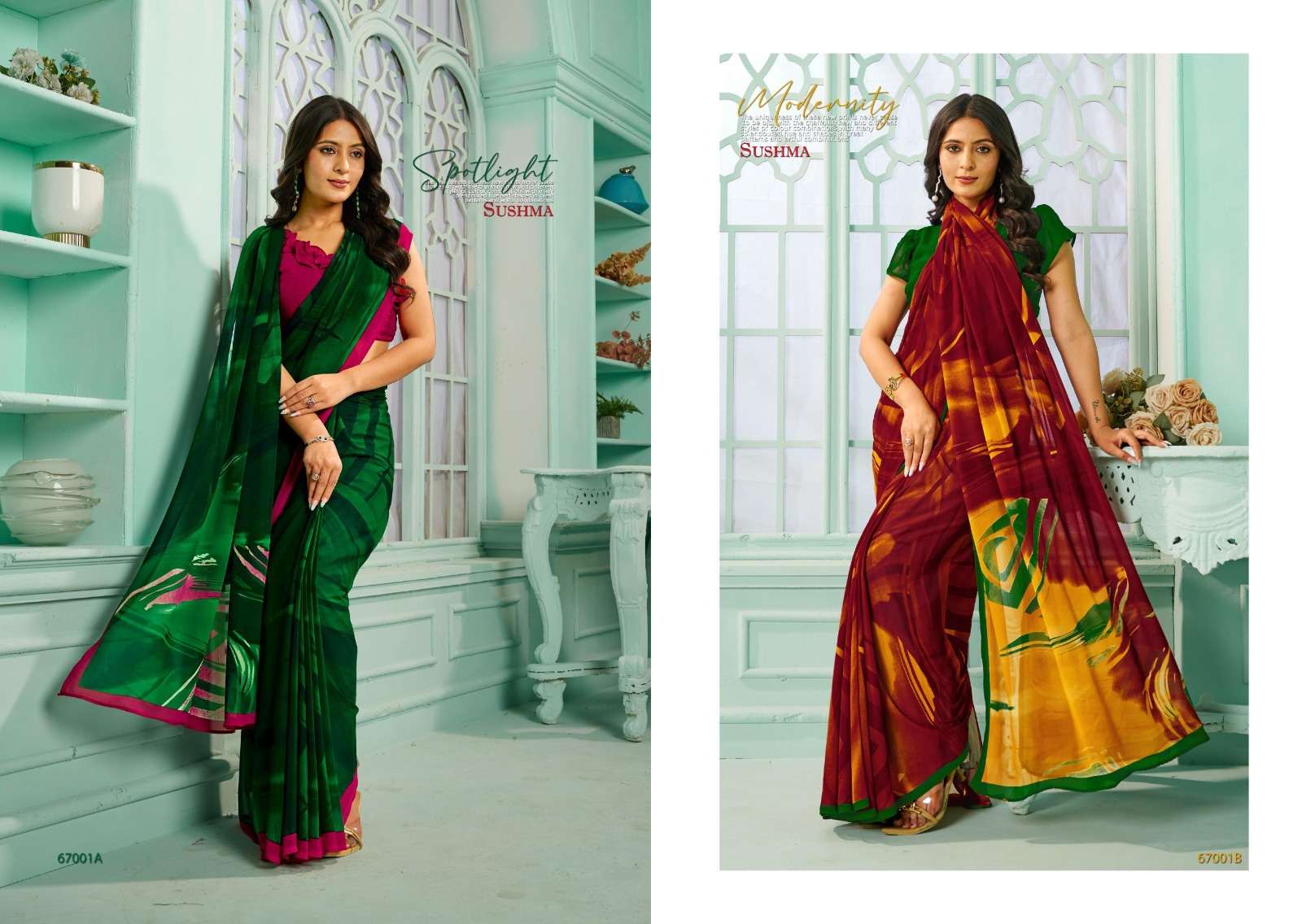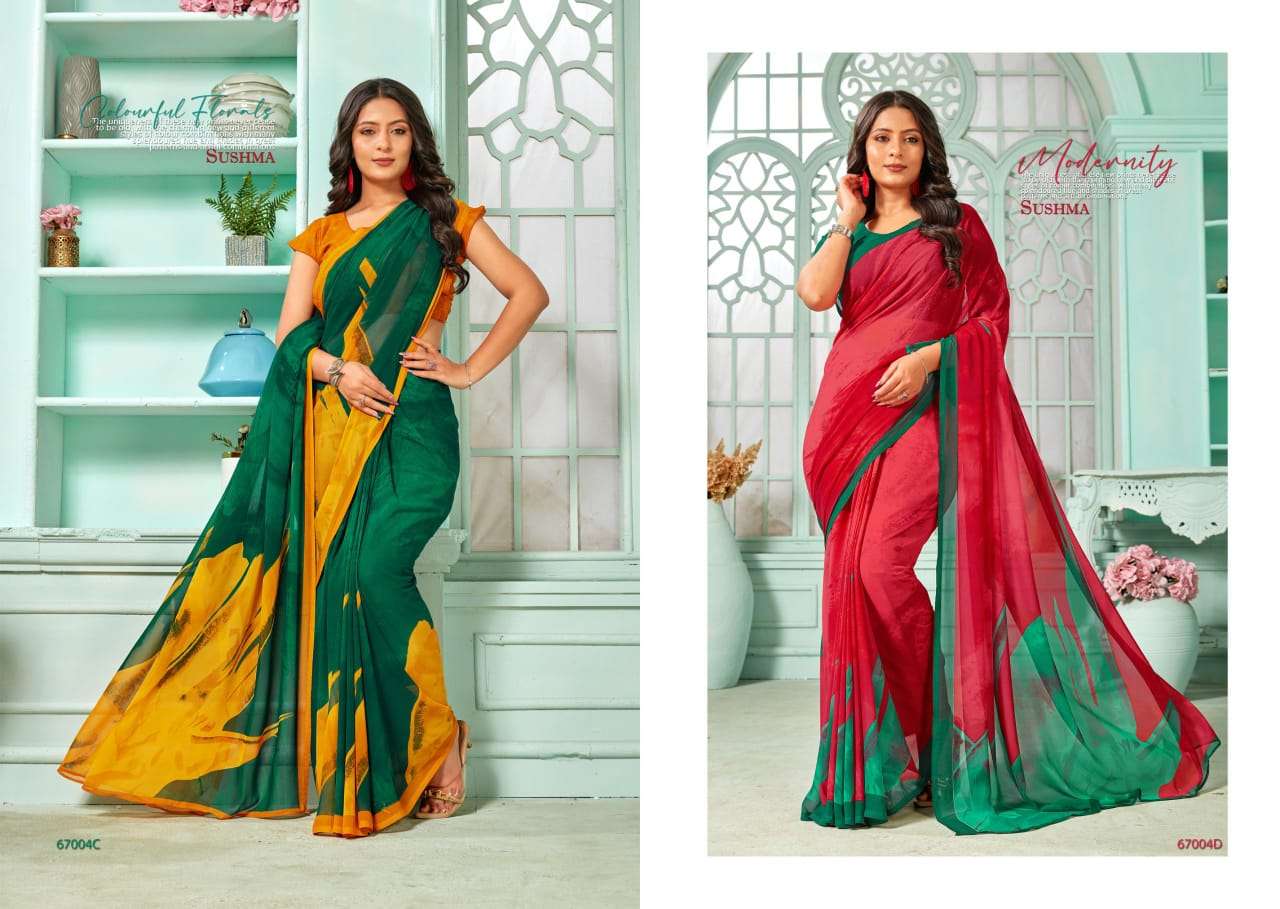 Buy Online FLOURISH SERIES 67001A TO 67004D By SUSHMA saree Collection manufacturer surat 10 Pcs of Full Catalogue at Wholesale Price. Looking for FLOURISH SERIES 67001A TO 67004D By SUSHMA saree Collection manufacturer surat Full Catalouge at Best Price? Buy Now FLOURISH SERIES 67001A TO 67004D By SUSHMA saree Collection manufacturer surat at Wholesale Rate of Rs 5400 with Total 10 Pcs from authroized dealer and supplier of BRAND'S Brand. Cost of Each piece is just only Rs 540 which is very low and affordable price to resale the product in your retail store ,This is Surat based Wholesale Supplier & Dealer of BRAND'S Brand. Click on Brand name to Know more about BRAND'S Brand's products.Call or Whatsapp on 9898838984 for booking or enquiry