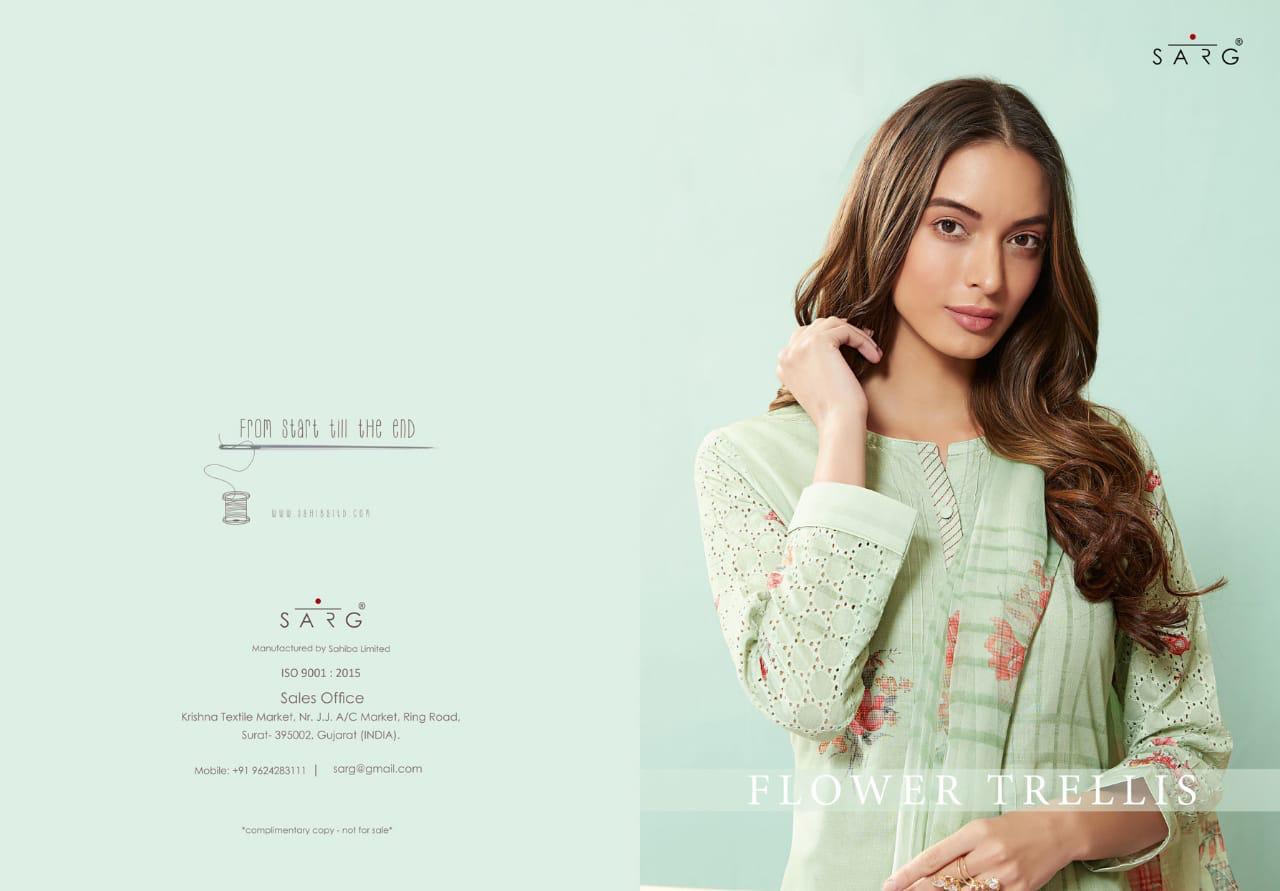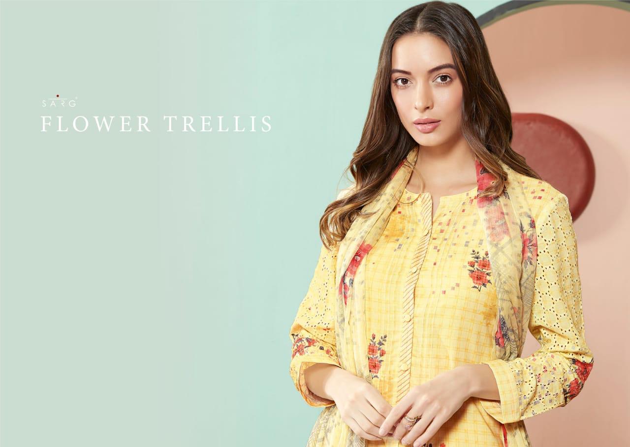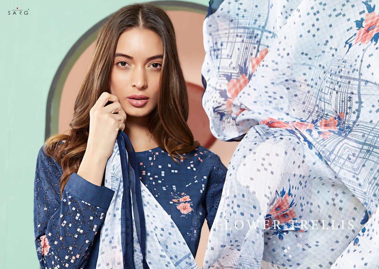Buy Online Flower Trellis By Sahiba Sarg Cambric Cotton Embroidered Designer Suits Wholesale Supplier Gujarat 11 Pcs of Full Catalogue at Wholesale Price. Looking for Flower Trellis By Sahiba Sarg Cambric Cotton Embroidered Designer Suits Wholesale Supplier Gujarat Full Catalouge at Best Price? Buy Now Flower Trellis By Sahiba Sarg Cambric Cotton Embroidered Designer Suits Wholesale Supplier Gujarat at Wholesale Rate of Rs 18645 with Total 11 Pcs from authroized dealer and supplier of SARG Brand. Cost of Each piece is just only Rs 1695 which is very low and affordable price to resale the product in your retail store ,This is Surat based Wholesale Supplier & Dealer of SARG Brand. Click on Brand name to Know more about SARG Brand's products.Call or Whatsapp on 9898838984 for booking or enquiry