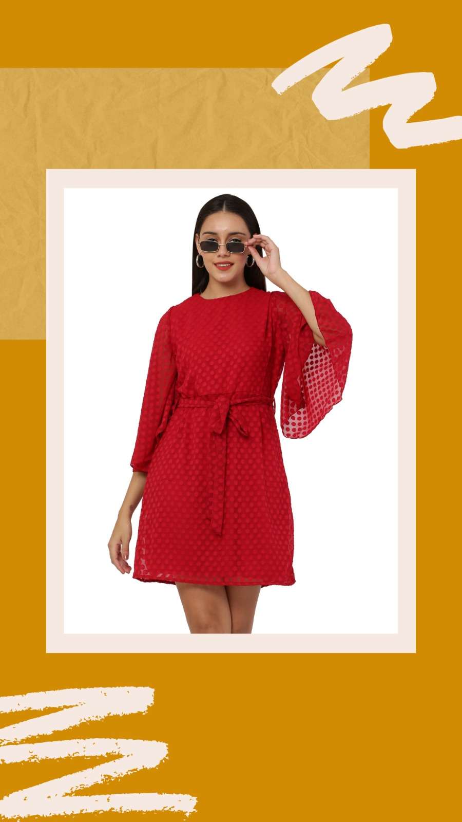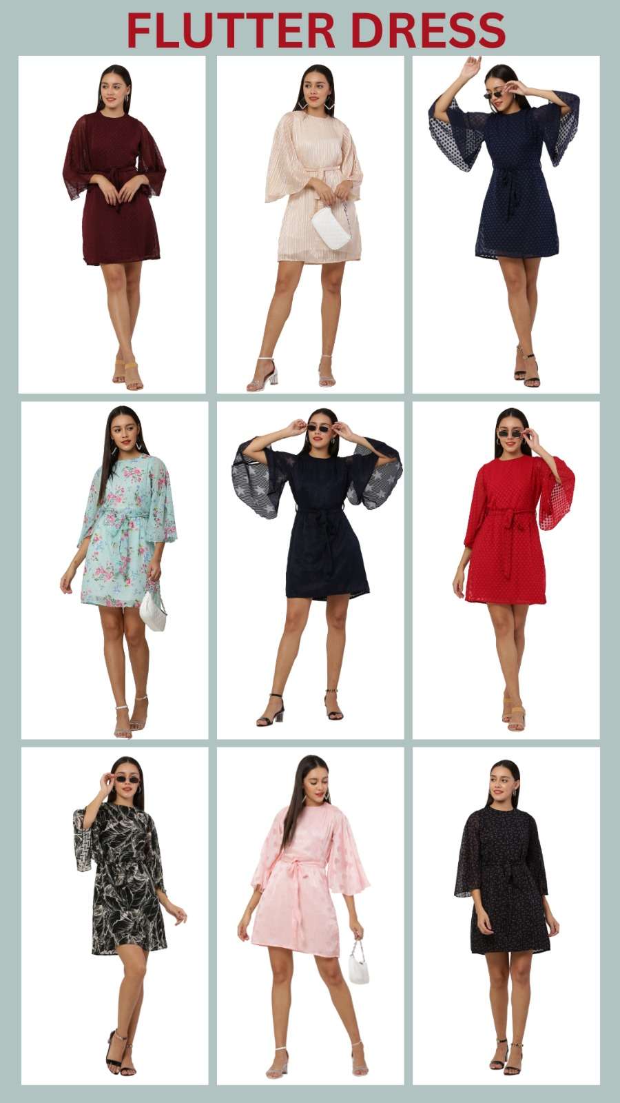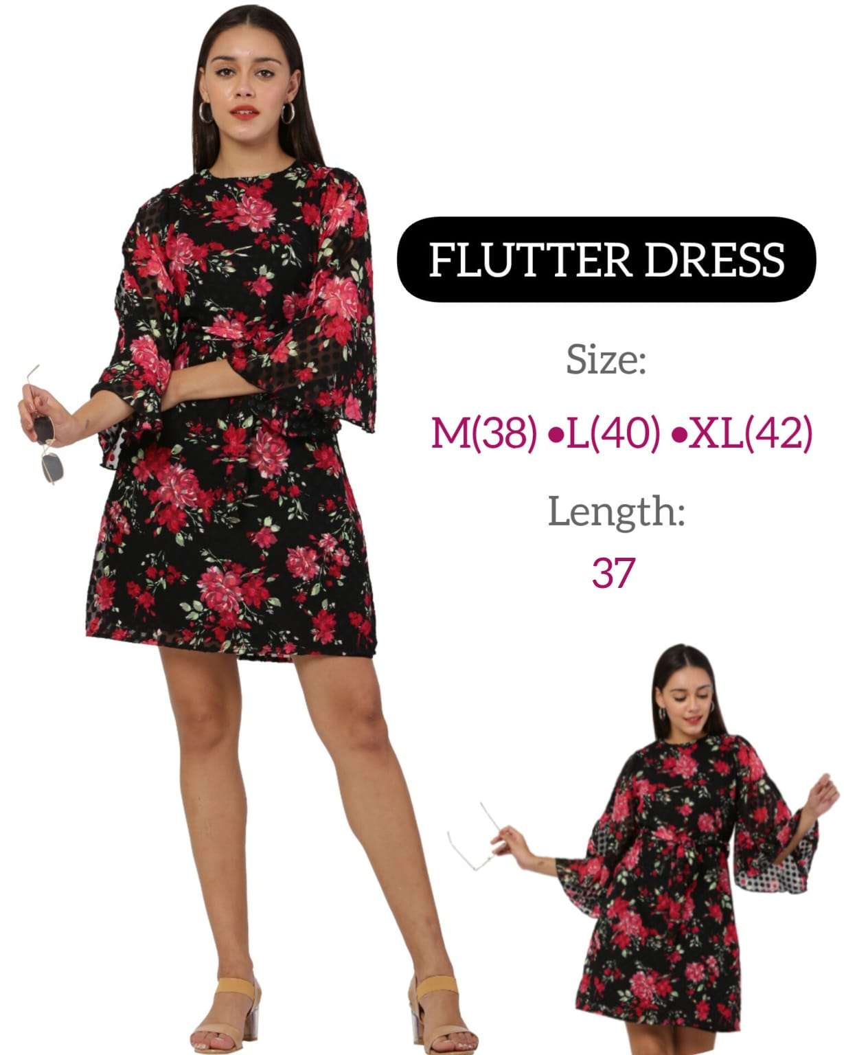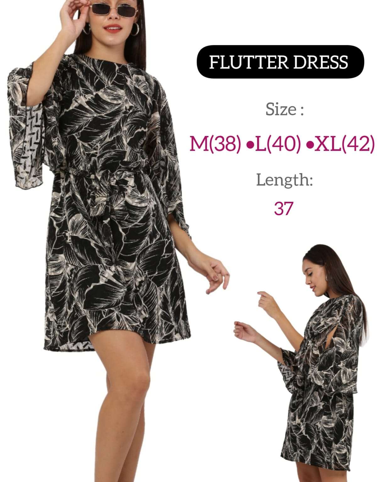 *FLUTTER SLEEVE DRESS* *Fabric:* Premium Georgette with Lining *USP 1:* Trendy Flutter Sleeve *USP 2:* Knotted Belt *Size:* 38 (M) • 40 (L) • 42 (XL) *Length:* 37 inch