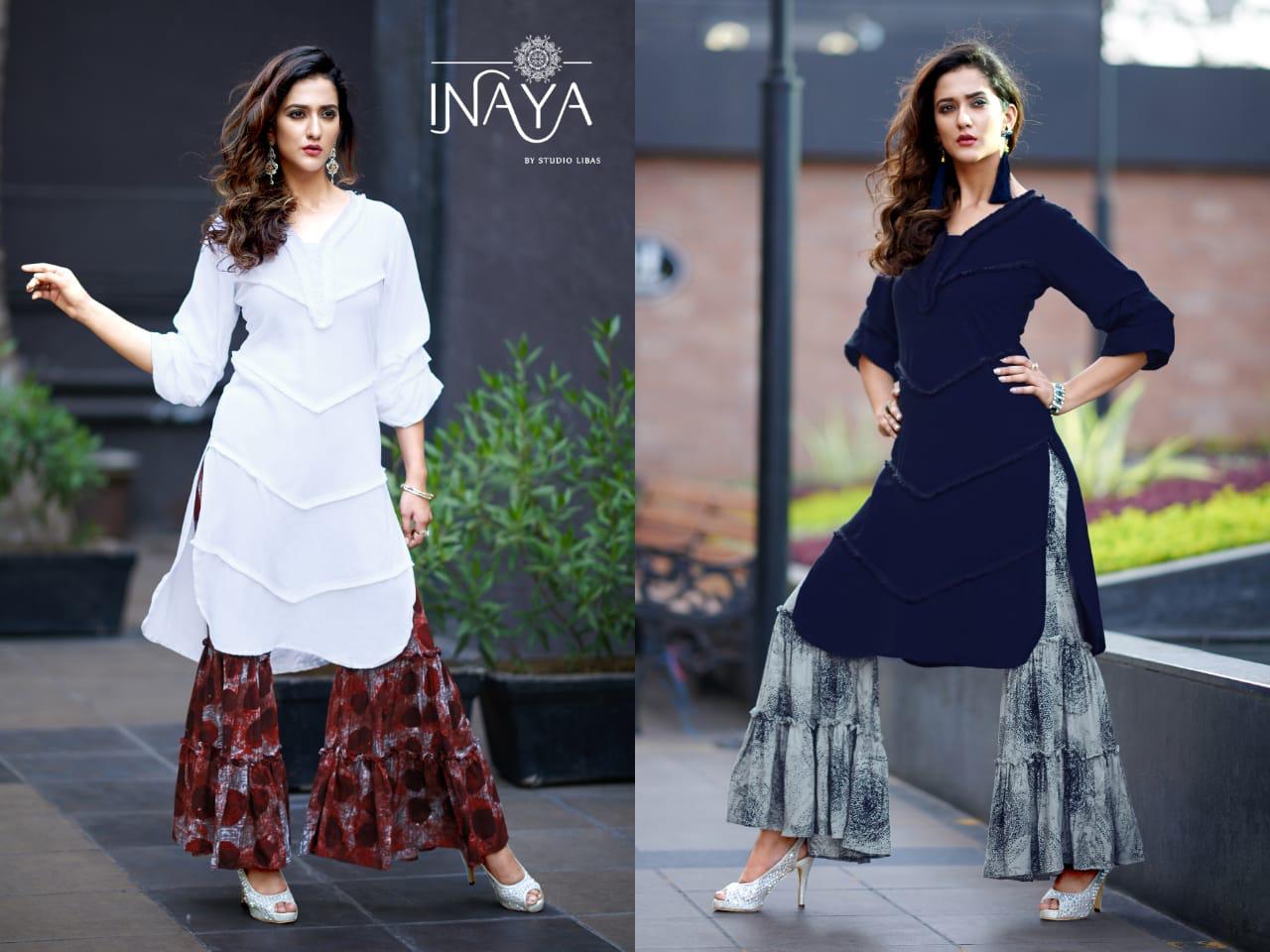 Formal Collection 2 By Inaya Studio Libas Kurtis With Double Layer Garara Collection Wholesale Supplier Gujarat