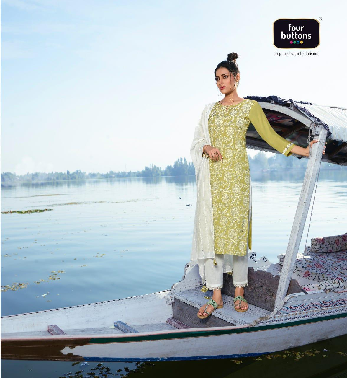 Buy Online Four Gems 2 By Four Buttons Kurtis With Bottom And Dupatta Wholesale Supplier Gujarat 4 Pcs of Full Catalogue at Wholesale Price. Looking for Four Gems 2 By Four Buttons Kurtis With Bottom And Dupatta Wholesale Supplier Gujarat Full Catalouge at Best Price? Buy Now Four Gems 2 By Four Buttons Kurtis With Bottom And Dupatta Wholesale Supplier Gujarat at Wholesale Rate of Rs 3596 with Total 4 Pcs from authroized dealer and supplier of FOUR BUTTONS Brand. Cost of Each piece is just only Rs 899 which is very low and affordable price to resale the product in your retail store ,This is Surat based Wholesale Supplier & Dealer of FOUR BUTTONS Brand. Click on Brand name to Know more about FOUR BUTTONS Brand's products.Call or Whatsapp on 9898838984 for booking or enquiry