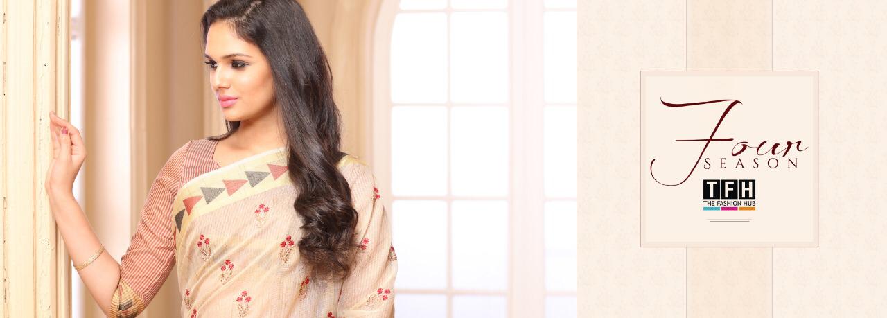 Four Season By Tfh 6601 Series Fancy Cotton Weaving Silk Saree Collection Wholesaler Surat