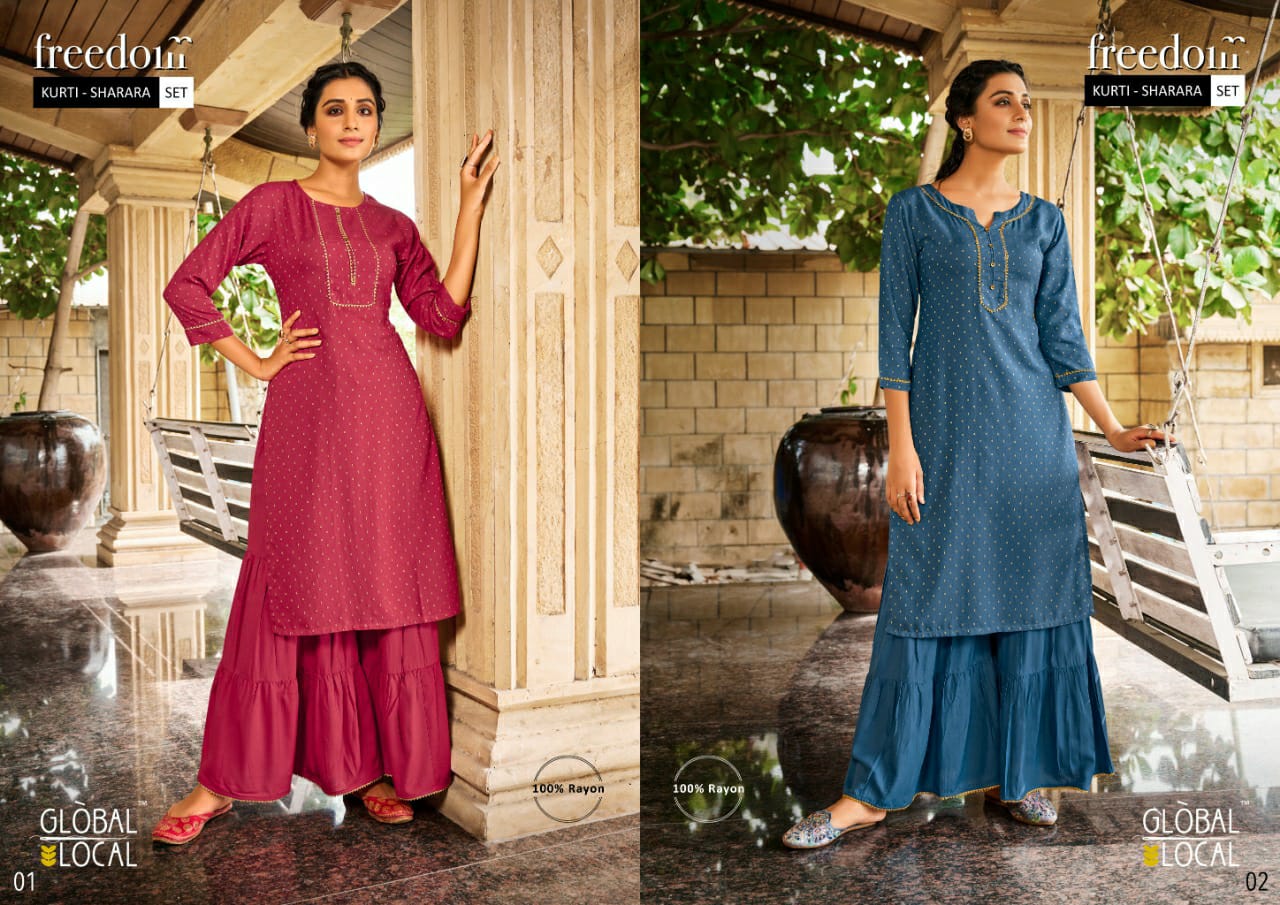 Freedom Kurti With Sharara Pant By Global Local Wholesaler Supplier From Surat