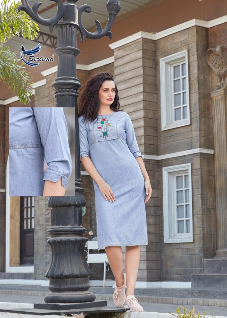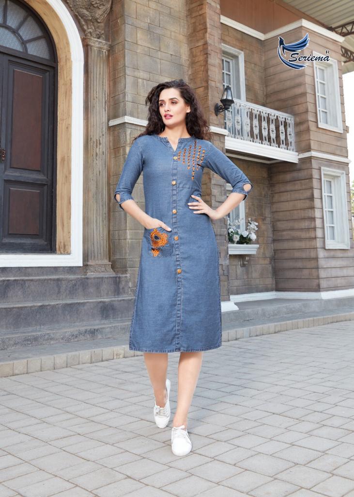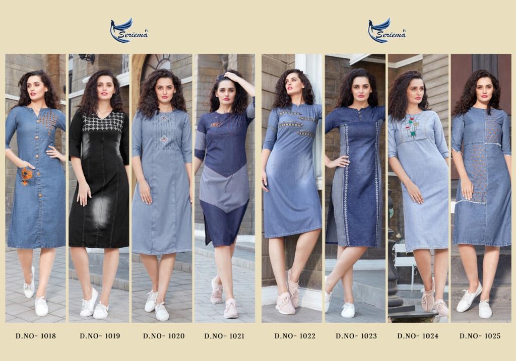 Buy Online Funky Look By Seriema Denim Kurtis Wholesale Supplier And Dealer Surat 8 Pcs of Full Catalogue at Wholesale Price. Looking for Funky Look By Seriema Denim Kurtis Wholesale Supplier And Dealer Surat Full Catalouge at Best Price? Buy Now Funky Look By Seriema Denim Kurtis Wholesale Supplier And Dealer Surat at Wholesale Rate of Rs 5400 with Total 8 Pcs from authroized dealer and supplier of Seriema Brand. Cost of Each piece is just only Rs 675 which is very low and affordable price to resale the product in your retail store ,This is Surat based Wholesale Supplier & Dealer of Seriema Brand. Click on Brand name to Know more about Seriema Brand's products.Call or Whatsapp on 9898838984 for booking or enquiry