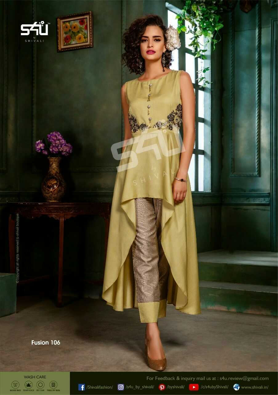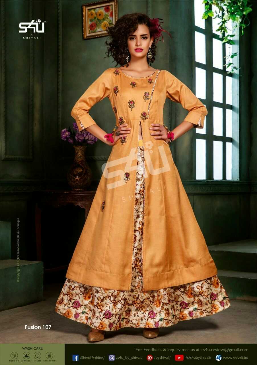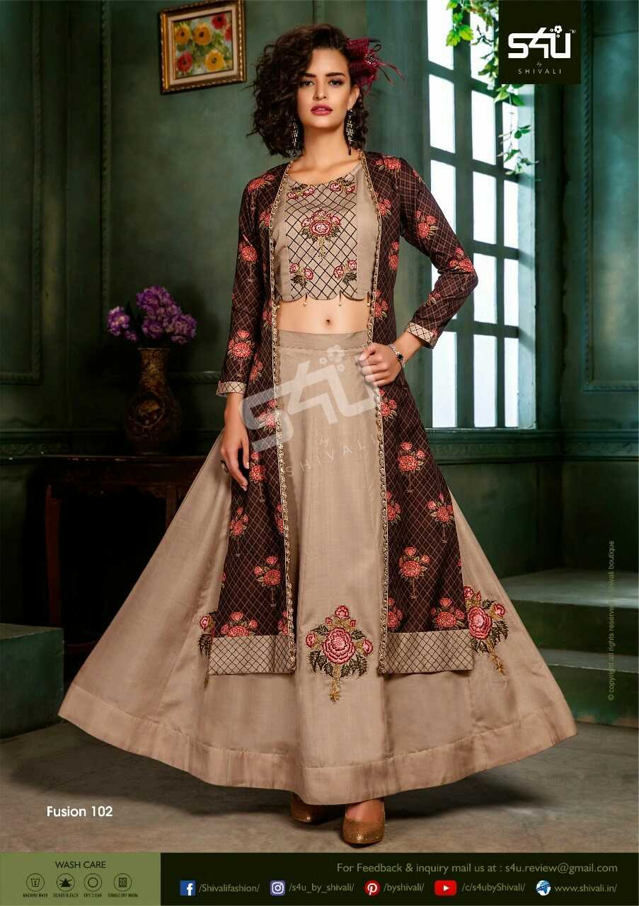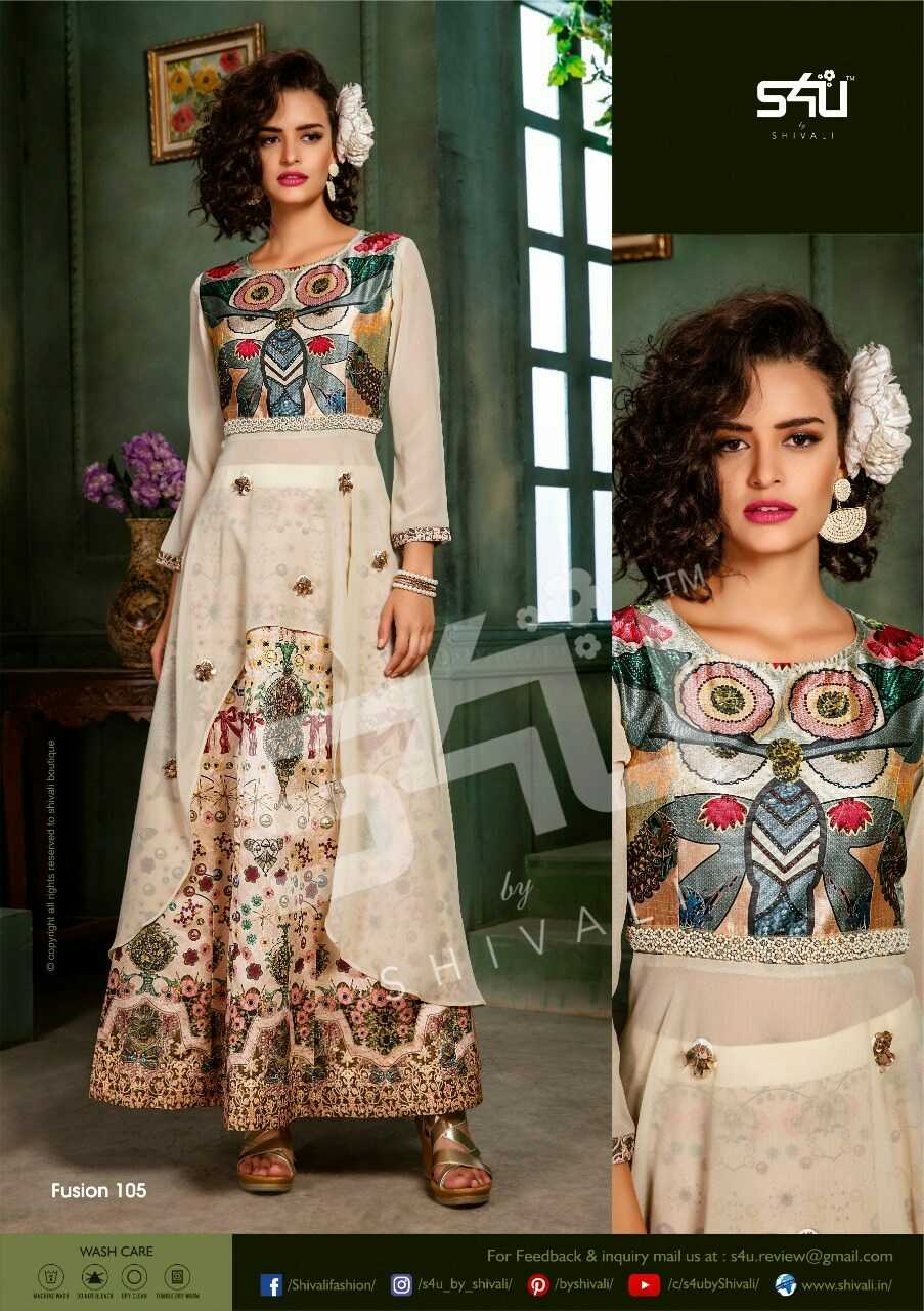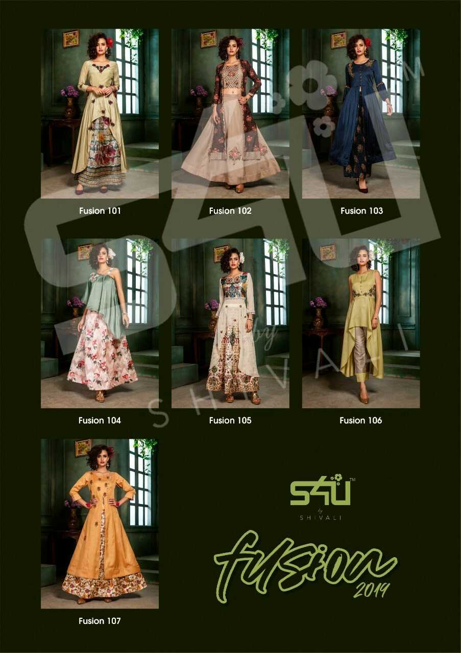 You canÂ?t go wrong with this! A symphony of colours , a feast of luxe & a tale of beauty & grace. S4U by Shivali brings you exclusively stylish kurtas with skirts & plazzos Â?Fusion 2019Â?! No. Of designs: 7 Rate: 1495/- Sizes: L &XL Gst. Extra |