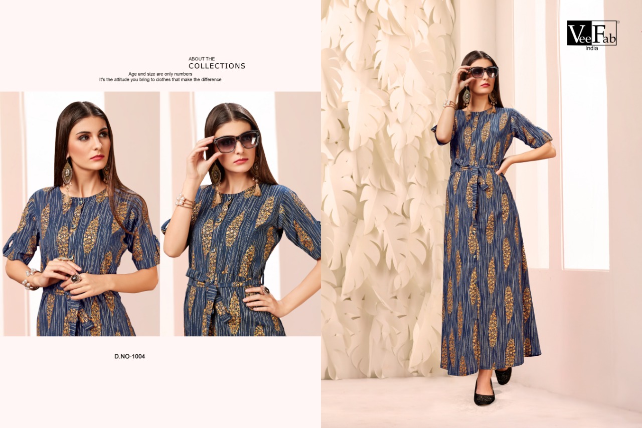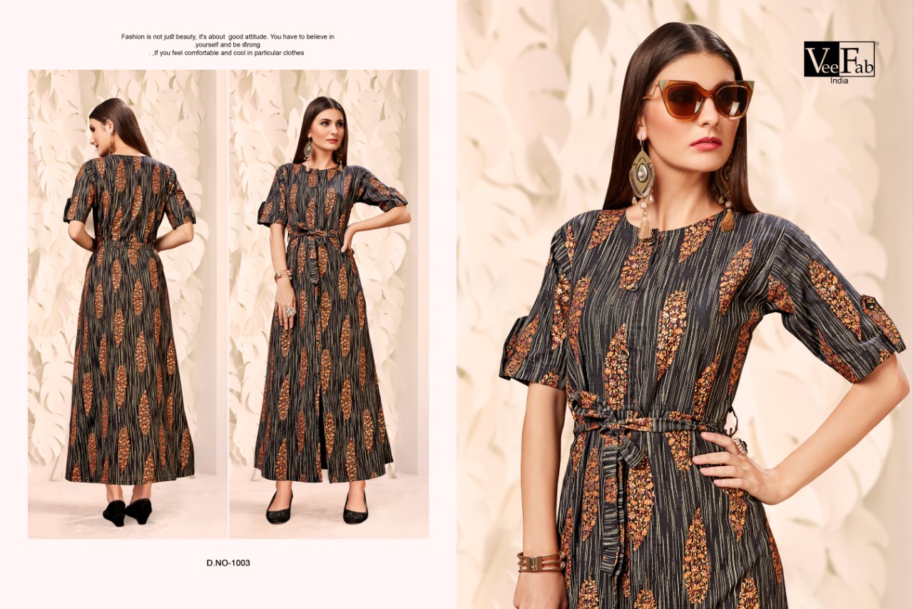 Vee fab India Â? Presents ?Fusion? *Fabric : heavy cotton print foil* Length- 50 *Size:*L(40") XL( 42" ) XXL( 44" )* *Price* 451+gst *High Quality guaranteed* *Ready to ship* |