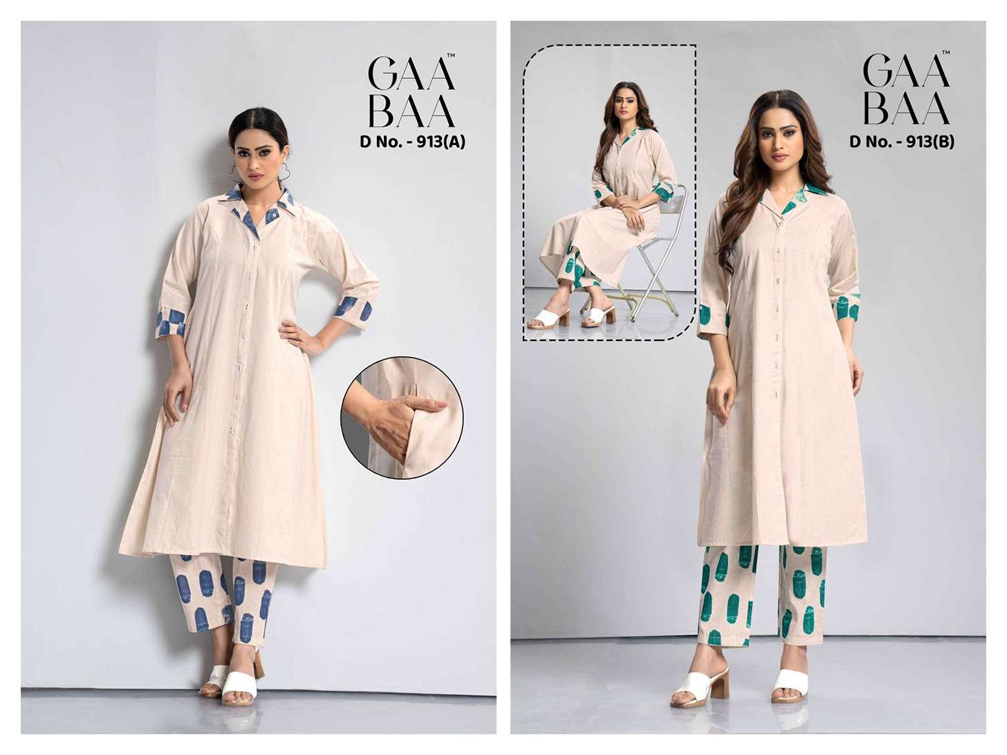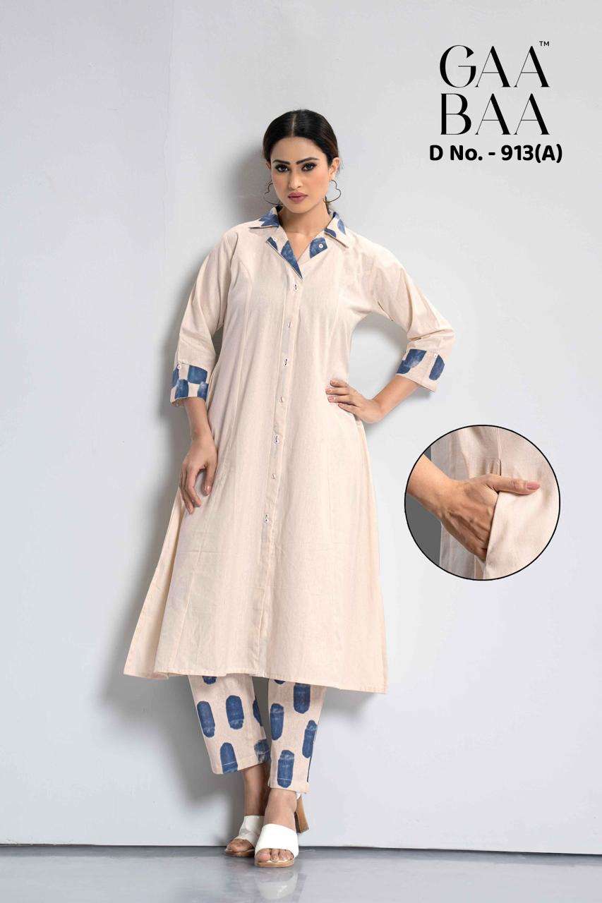 GAABAA D NO 913 Cotton Flex Coord Set Kurti collection manufacturer surat
