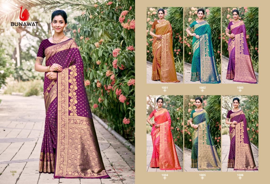Buy Online Gajgaminin Silk By Bunawat Silk Sarees Collection Surat 6 Pcs of Full Catalogue at Wholesale Price. Looking for Gajgaminin Silk By Bunawat Silk Sarees Collection Surat Full Catalouge at Best Price? Buy Now Gajgaminin Silk By Bunawat Silk Sarees Collection Surat at Wholesale Rate of Rs 6150 with Total 6 Pcs from authroized dealer and supplier of BUNAWAT Brand. Cost of Each piece is just only Rs 1025 which is very low and affordable price to resale the product in your retail store ,This is Surat based Wholesale Supplier & Dealer of BUNAWAT Brand. Click on Brand name to Know more about BUNAWAT Brand's products.Call or Whatsapp on 9898838984 for booking or enquiry
