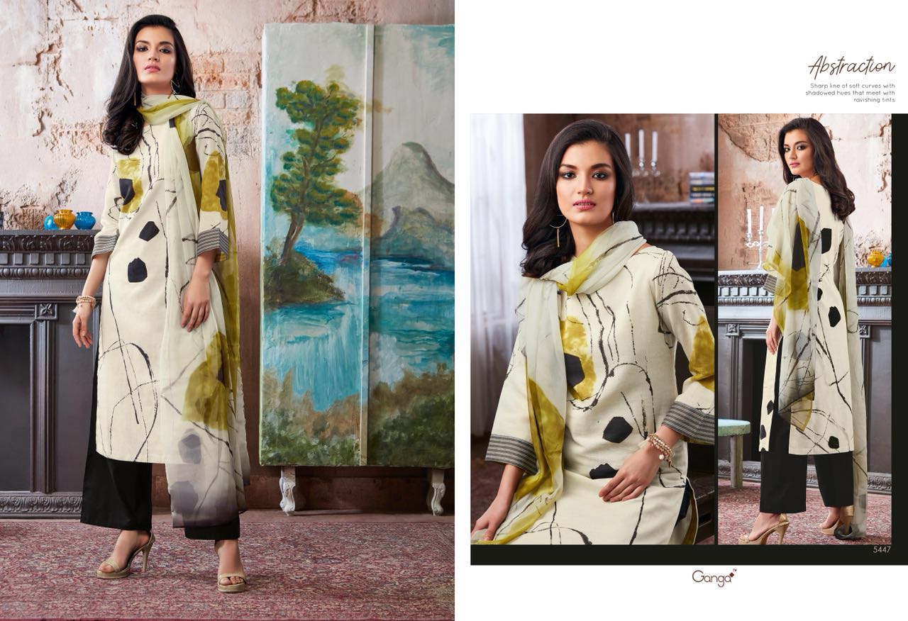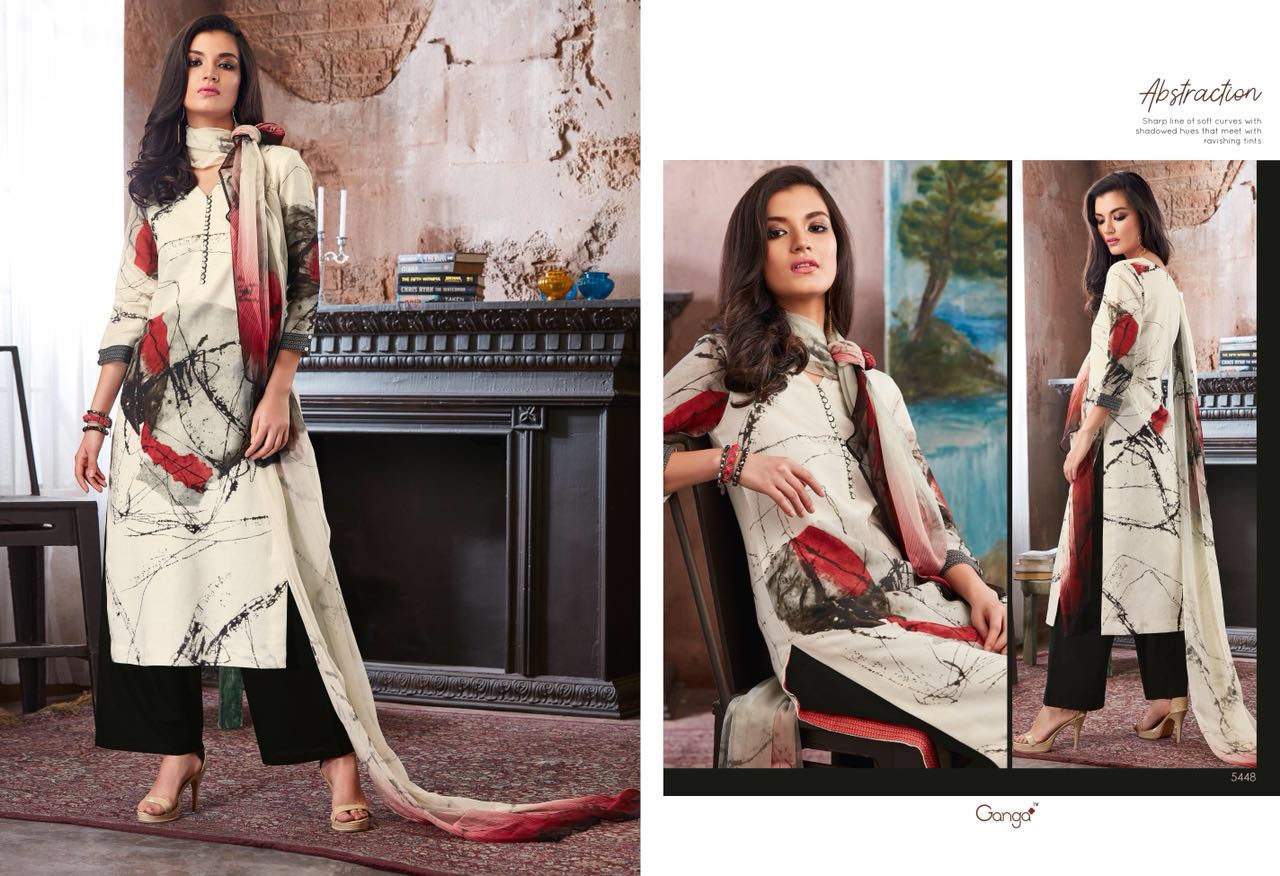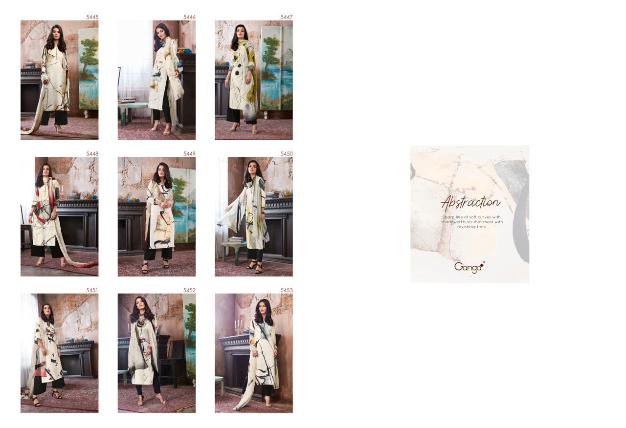 Buy Online Ganga Abstraction 5448 Series Cotton Digital Print Suit 9 Pcs of Full Catalogue at Wholesale Price. Looking for Ganga Abstraction 5448 Series Cotton Digital Print Suit Full Catalouge at Best Price? Buy Now Ganga Abstraction 5448 Series Cotton Digital Print Suit at Wholesale Rate of Rs 13905 with Total 9 Pcs from authroized dealer and supplier of GANGA Brand. Cost of Each piece is just only Rs 1545 which is very low and affordable price to resale the product in your retail store ,This is Surat based Wholesale Supplier & Dealer of GANGA Brand. Click on Brand name to Know more about GANGA Brand's products.Call or Whatsapp on 9898838984 for booking or enquiry