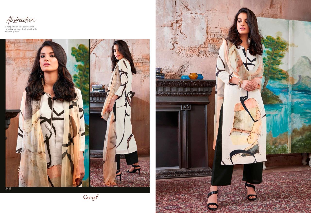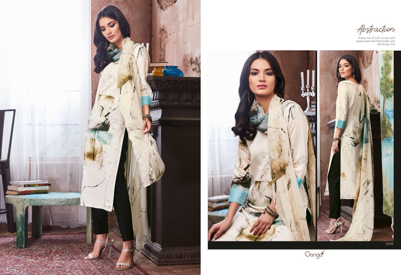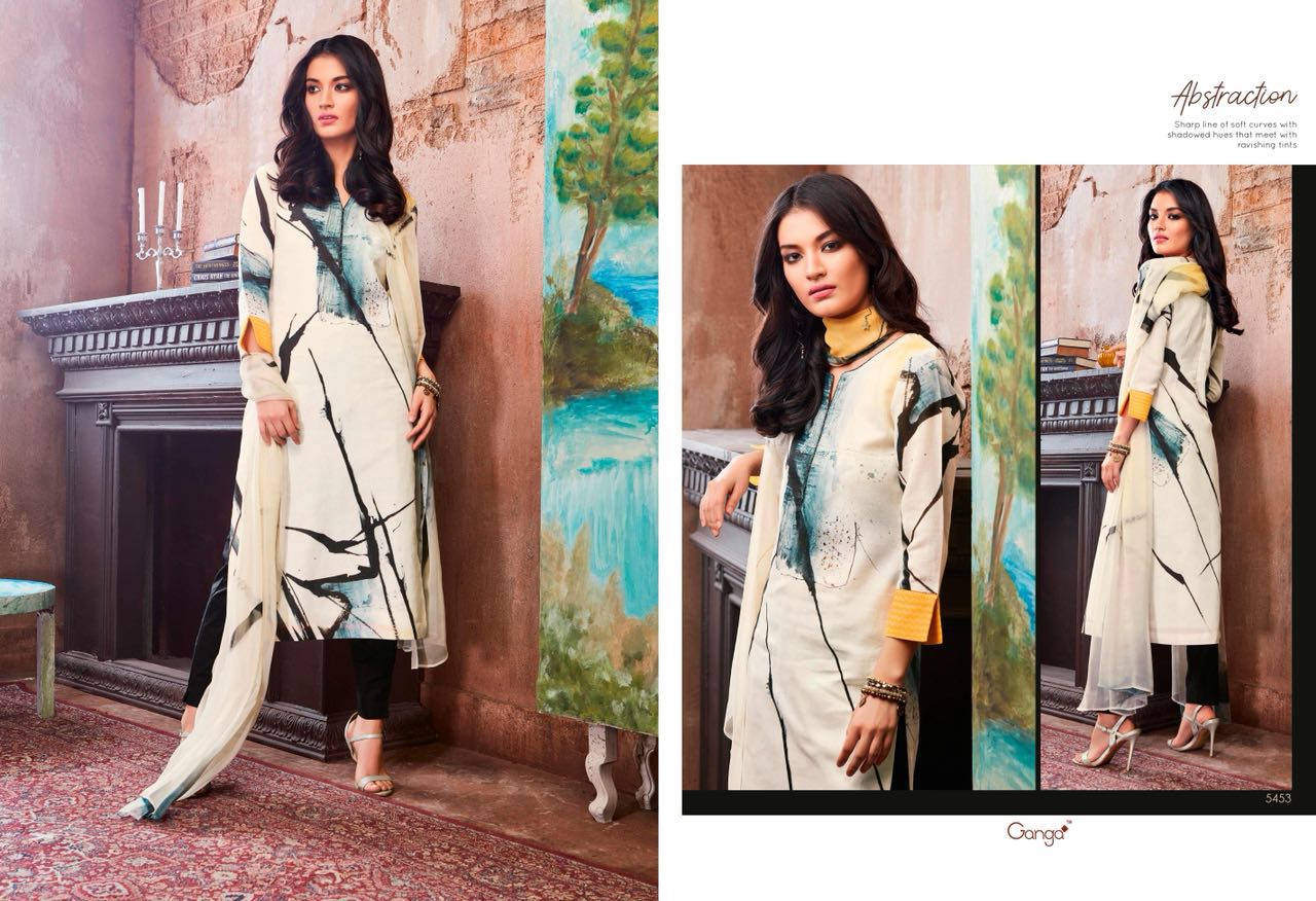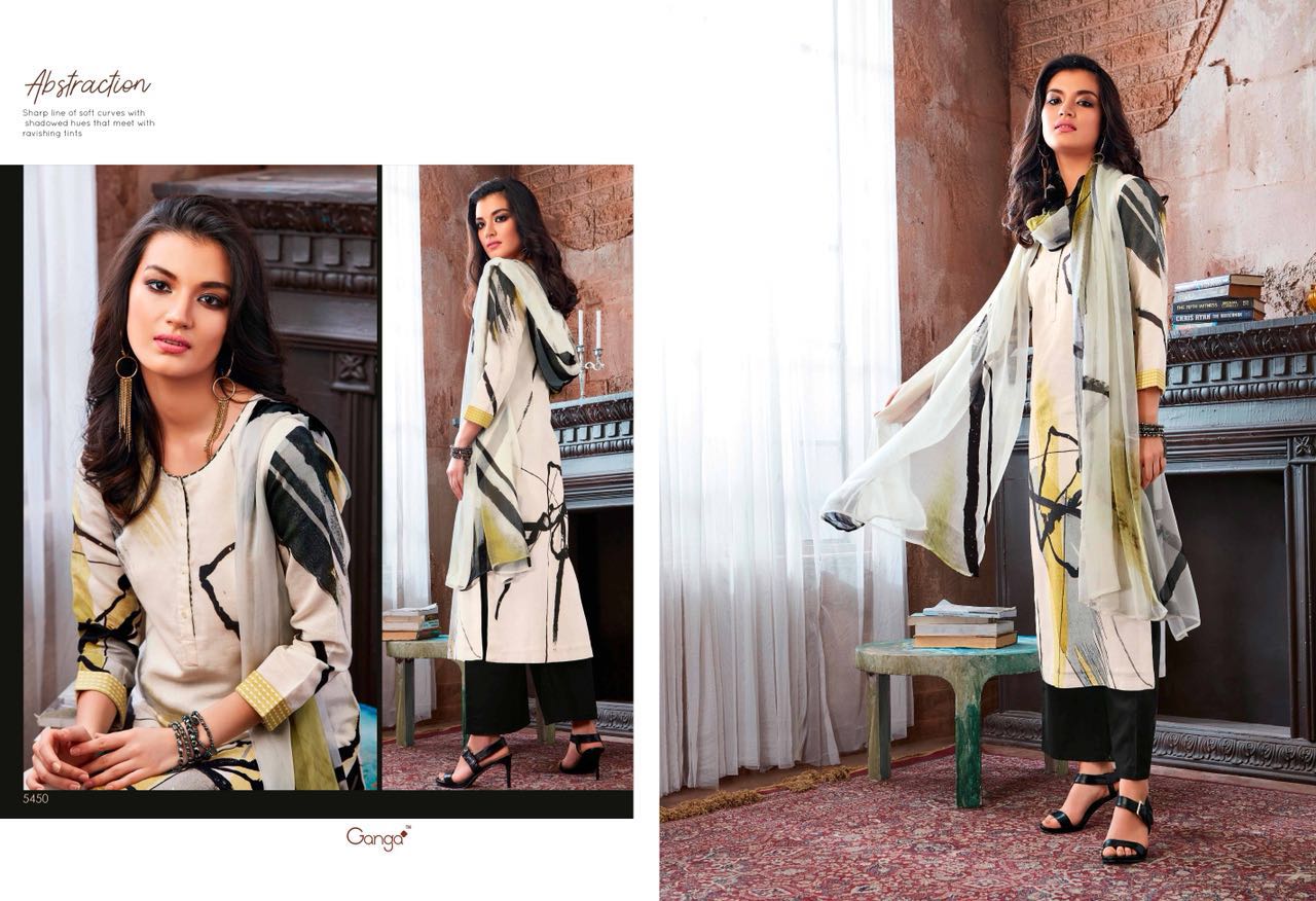 Buy Online Ganga Abstraction 5448 Series Cotton Digital Print Suit 9 Pcs of Full Catalogue at Wholesale Price. Looking for Ganga Abstraction 5448 Series Cotton Digital Print Suit Full Catalouge at Best Price? Buy Now Ganga Abstraction 5448 Series Cotton Digital Print Suit at Wholesale Rate of Rs 13905 with Total 9 Pcs from authroized dealer and supplier of GANGA Brand. Cost of Each piece is just only Rs 1545 which is very low and affordable price to resale the product in your retail store ,This is Surat based Wholesale Supplier & Dealer of GANGA Brand. Click on Brand name to Know more about GANGA Brand's products.Call or Whatsapp on 9898838984 for booking or enquiry