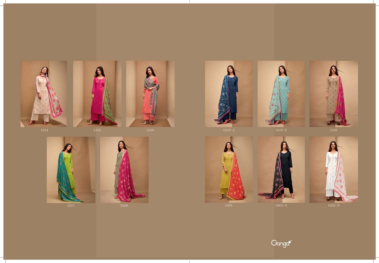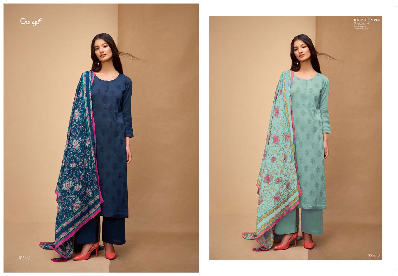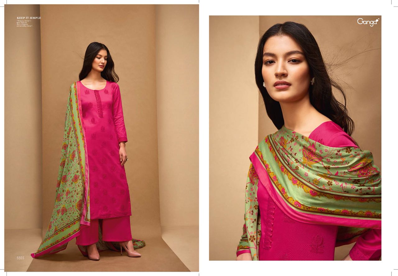 Buy Online Ganga Affair 5554 Series Fancy Cotton Solid Embroidery Salwar Kameez Wholesale Dealer Surat 11 Pcs of Full Catalogue at Wholesale Price. Looking for Ganga Affair 5554 Series Fancy Cotton Solid Embroidery Salwar Kameez Wholesale Dealer Surat Full Catalouge at Best Price? Buy Now Ganga Affair 5554 Series Fancy Cotton Solid Embroidery Salwar Kameez Wholesale Dealer Surat at Wholesale Rate of Rs 15345 with Total 11 Pcs from authroized dealer and supplier of GANGA Brand. Cost of Each piece is just only Rs 1395 which is very low and affordable price to resale the product in your retail store ,This is Surat based Wholesale Supplier & Dealer of GANGA Brand. Click on Brand name to Know more about GANGA Brand's products.Call or Whatsapp on 9898838984 for booking or enquiry