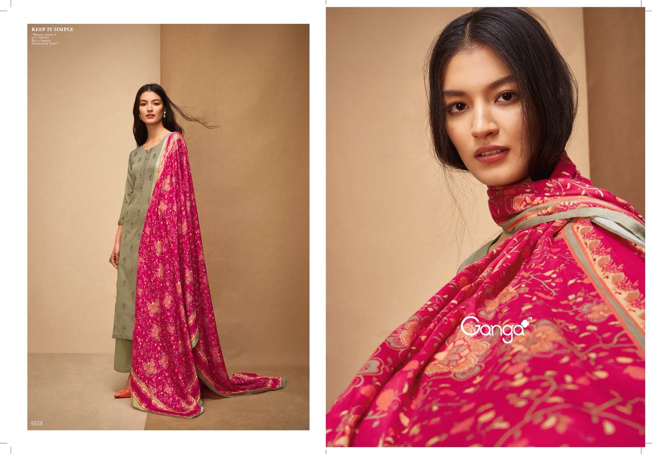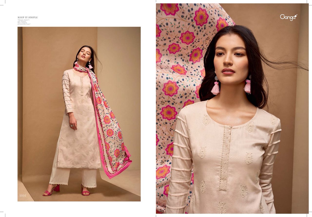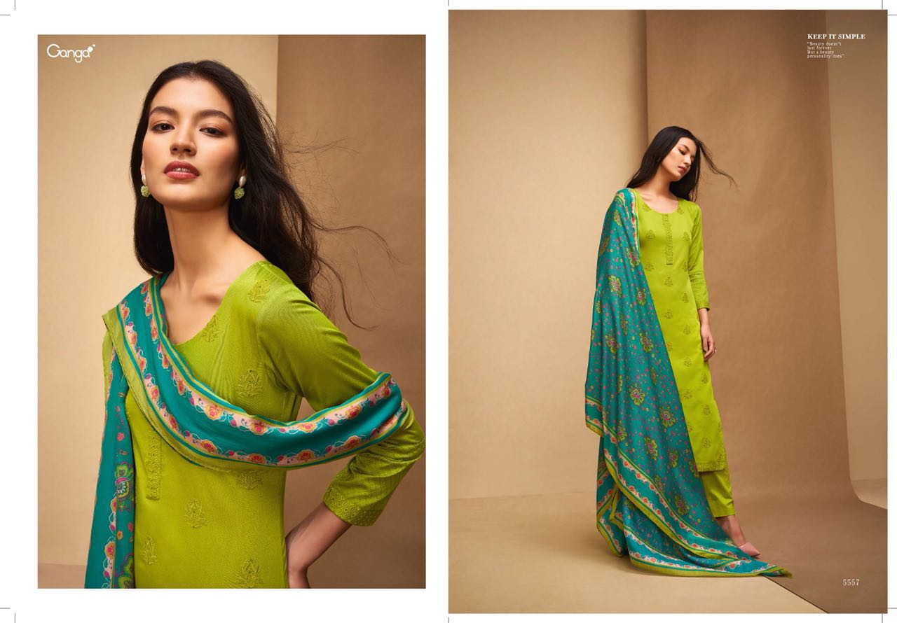 Buy Online Ganga Affair 5554 Series Fancy Cotton Solid Embroidery Salwar Kameez Wholesale Dealer Surat 11 Pcs of Full Catalogue at Wholesale Price. Looking for Ganga Affair 5554 Series Fancy Cotton Solid Embroidery Salwar Kameez Wholesale Dealer Surat Full Catalouge at Best Price? Buy Now Ganga Affair 5554 Series Fancy Cotton Solid Embroidery Salwar Kameez Wholesale Dealer Surat at Wholesale Rate of Rs 15345 with Total 11 Pcs from authroized dealer and supplier of GANGA Brand. Cost of Each piece is just only Rs 1395 which is very low and affordable price to resale the product in your retail store ,This is Surat based Wholesale Supplier & Dealer of GANGA Brand. Click on Brand name to Know more about GANGA Brand's products.Call or Whatsapp on 9898838984 for booking or enquiry