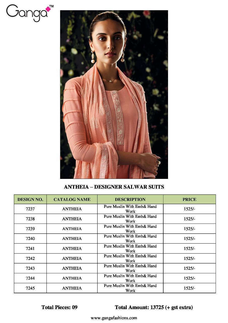 Ganga Antheia Series 7237 To 7245 Muslin Embroidered Designer Party Wear Suits Wholesale Supplier Surat