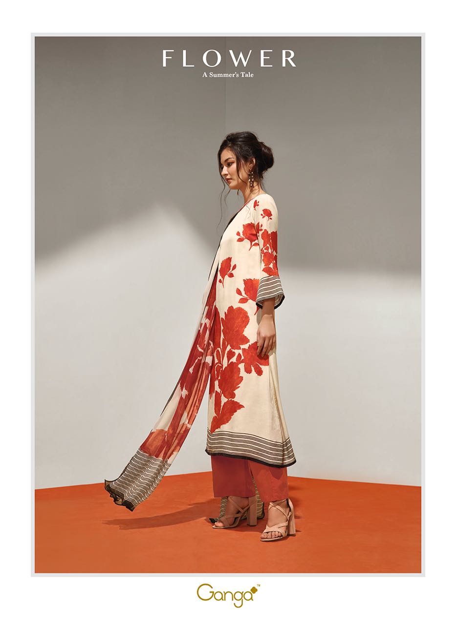 Ganga Flower 5418 To 5426 Series Bember Muslin Print Suits