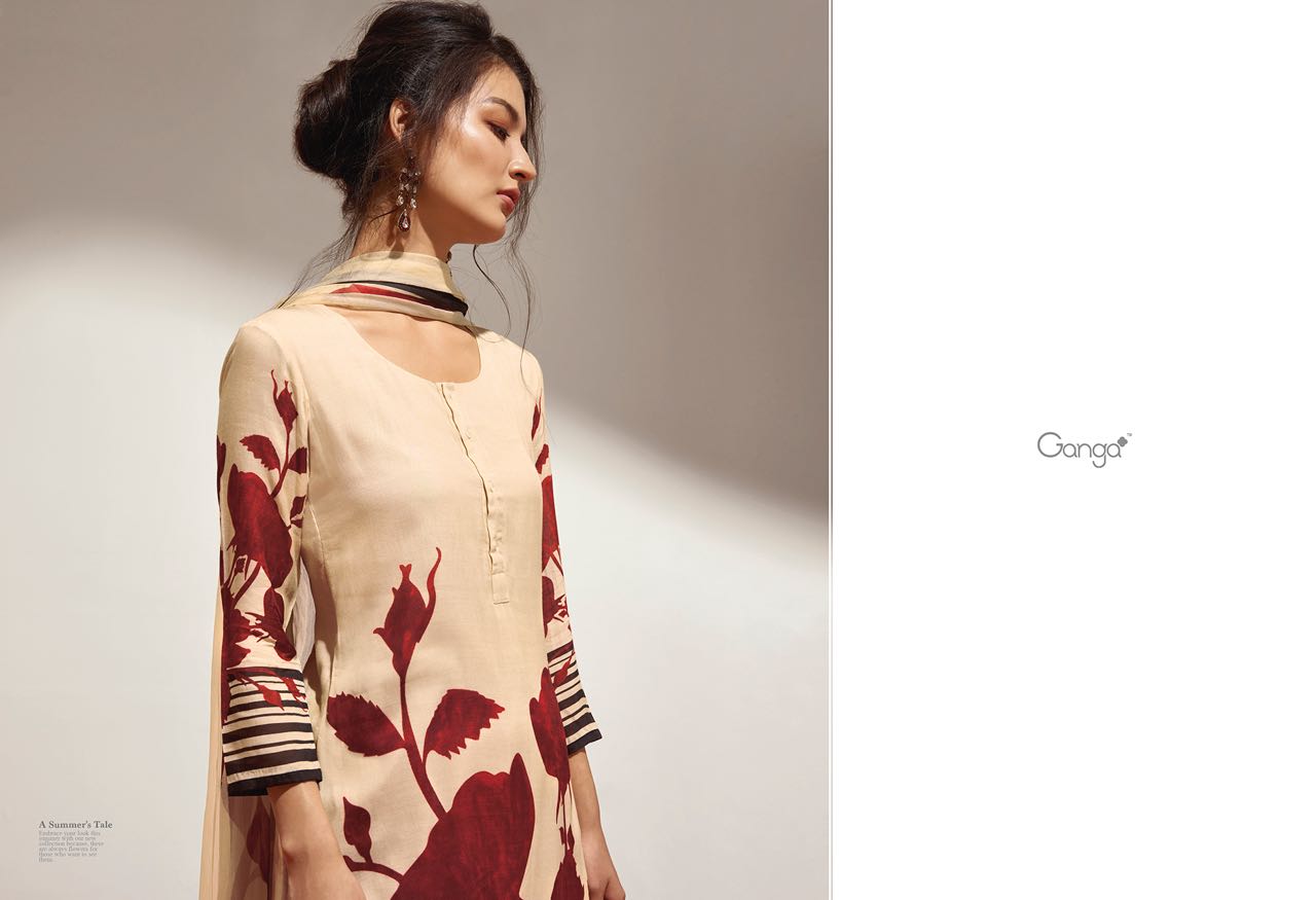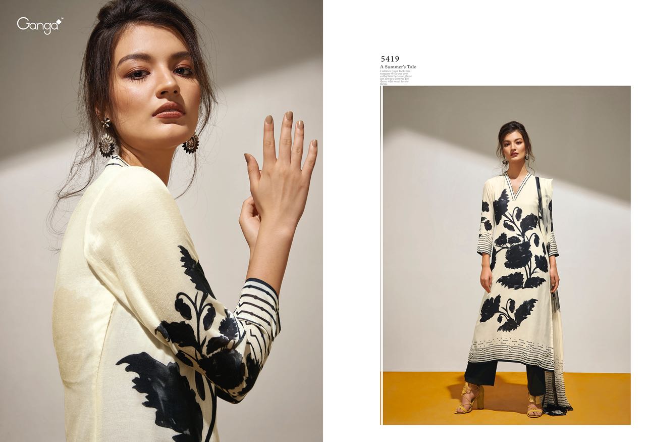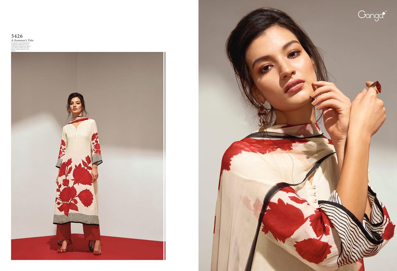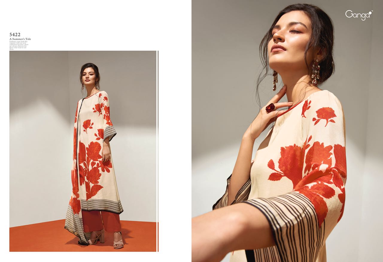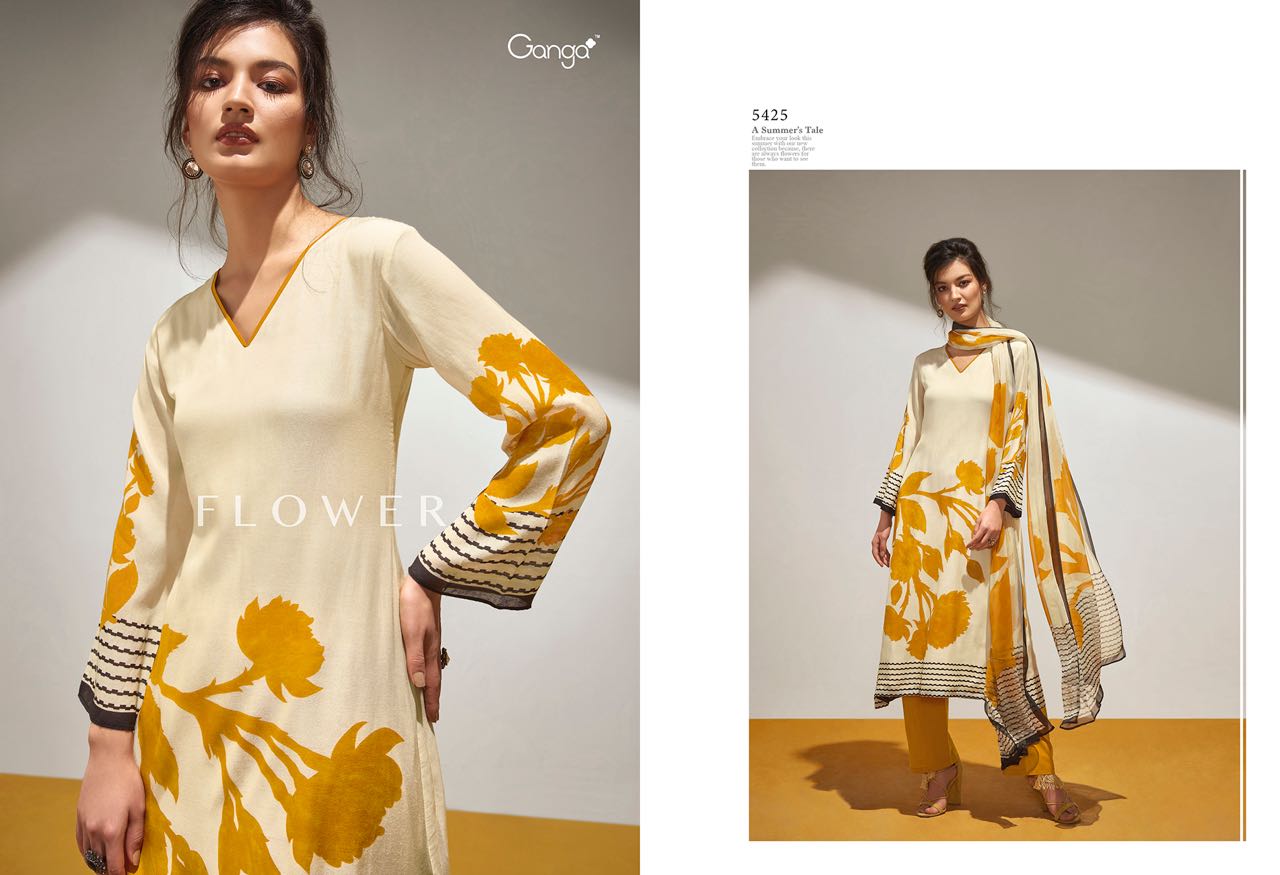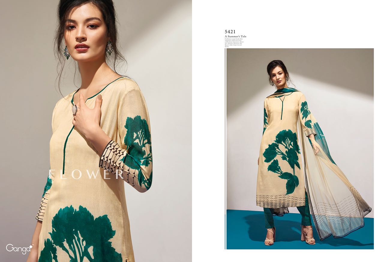 Buy Online Ganga Flower 5418 To 5426 Series Bember Muslin Print Suits 9 Pcs of Full Catalogue at Wholesale Price. Looking for Ganga Flower 5418 To 5426 Series Bember Muslin Print Suits Full Catalouge at Best Price? Buy Now Ganga Flower 5418 To 5426 Series Bember Muslin Print Suits at Wholesale Rate of Rs 13950 with Total 9 Pcs from authroized dealer and supplier of GANGA Brand. Cost of Each piece is just only Rs 1550 which is very low and affordable price to resale the product in your retail store ,This is Surat based Wholesale Supplier & Dealer of GANGA Brand. Click on Brand name to Know more about GANGA Brand's products.Call or Whatsapp on 9898838984 for booking or enquiry