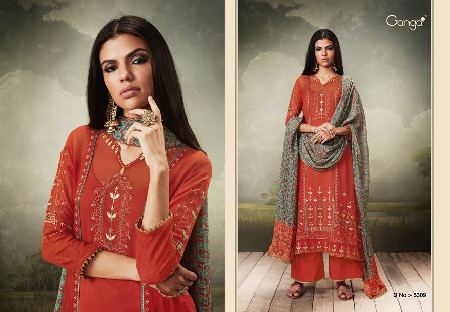 Buy Online Ganga Heritage 5309 To 5314 Series Fancy Georgette Suit 6 Pcs of Full Catalogue at Wholesale Price. Looking for Ganga Heritage 5309 To 5314 Series Fancy Georgette Suit Full Catalouge at Best Price? Buy Now Ganga Heritage 5309 To 5314 Series Fancy Georgette Suit at Wholesale Rate of Rs 14730 with Total 6 Pcs from authroized dealer and supplier of GANGA Brand. Cost of Each piece is just only Rs 2455 which is very low and affordable price to resale the product in your retail store ,This is Surat based Wholesale Supplier & Dealer of GANGA Brand. Click on Brand name to Know more about GANGA Brand's products.Call or Whatsapp on 9898838984 for booking or enquiry