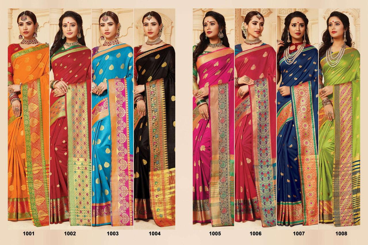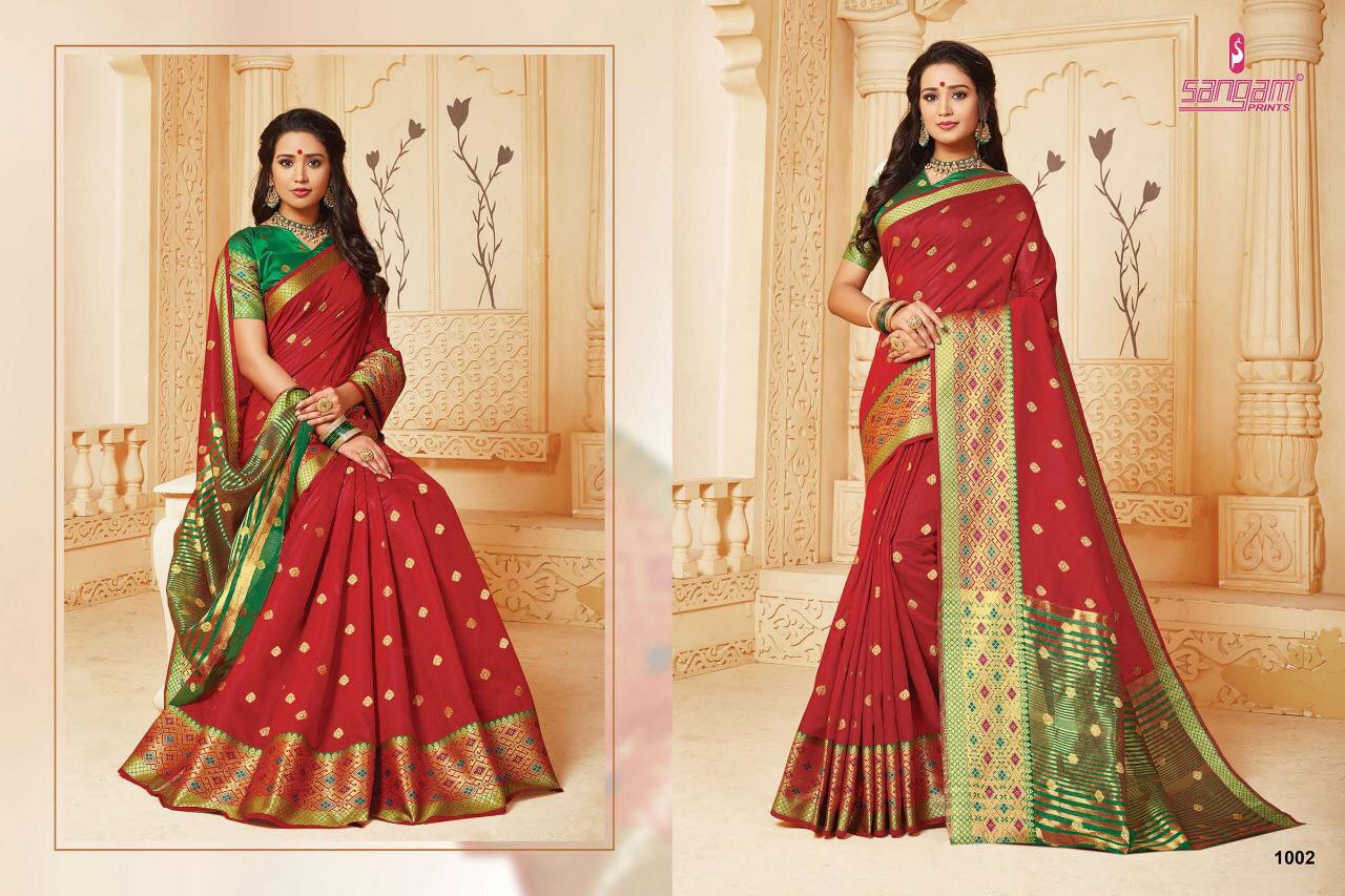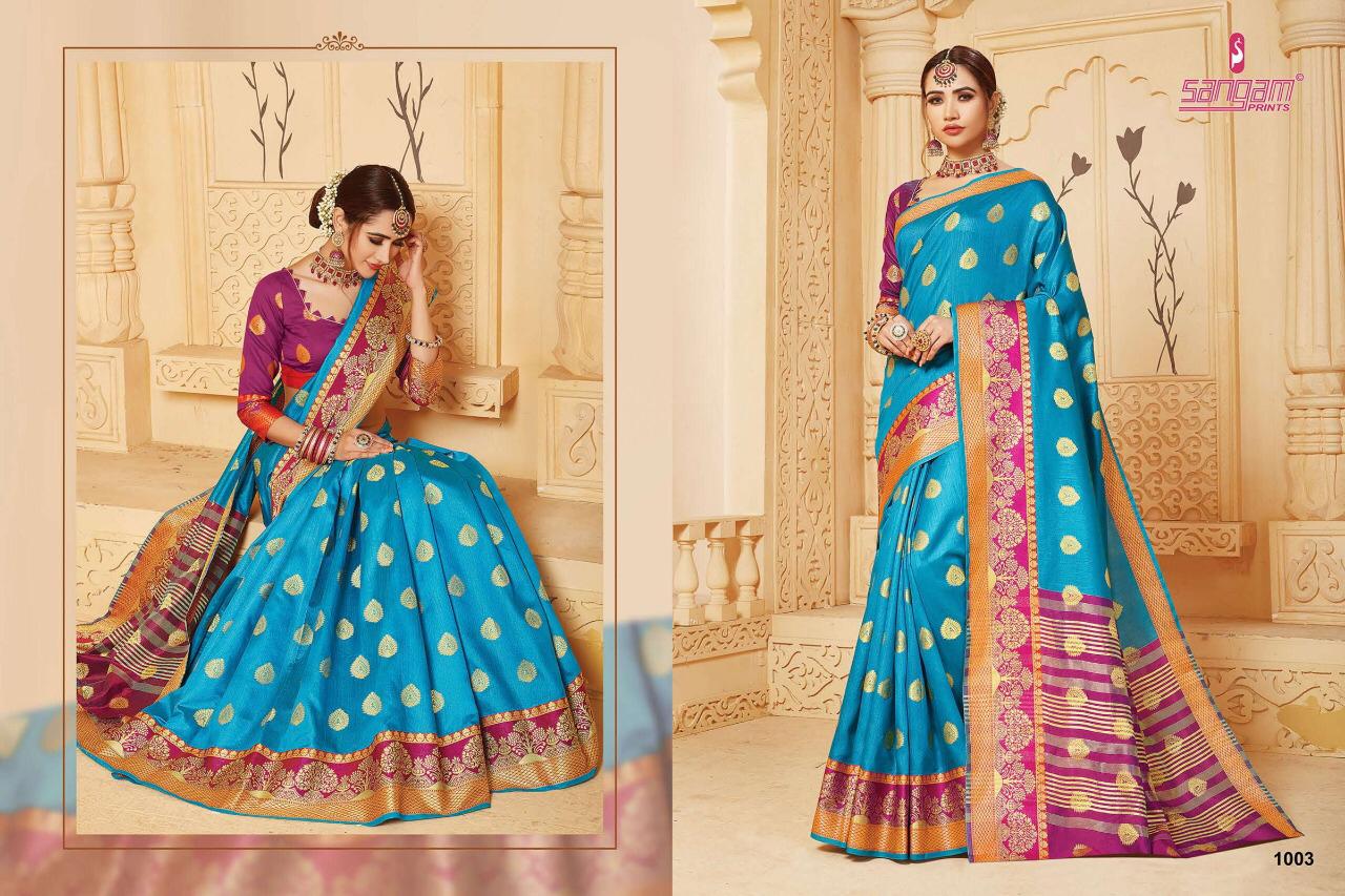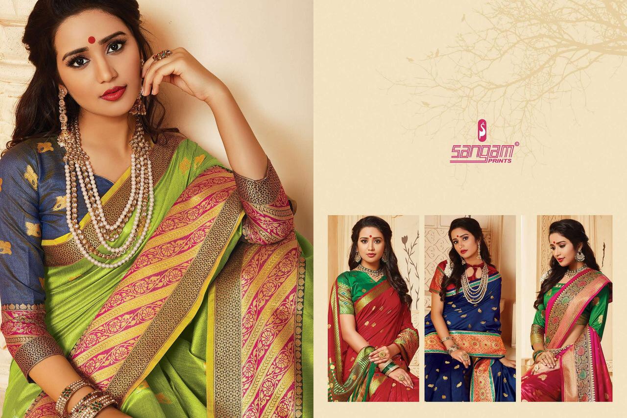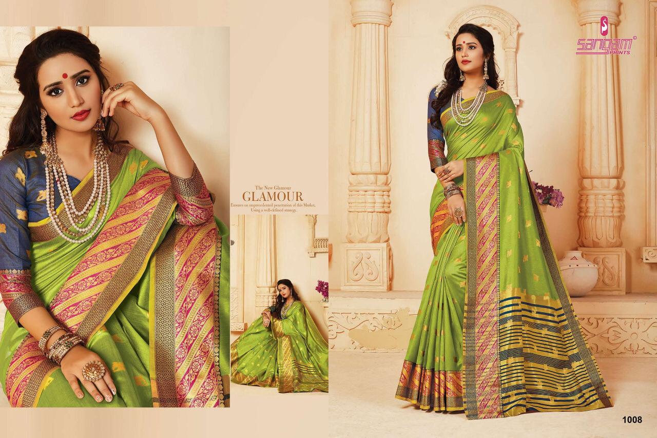 Buy Online Ganga Pallu Handloom By Sangam 1001 Series Fancy Party Wear Handloom Silk Saree Catlog Wholesaler Surat 8 Pcs of Full Catalogue at Wholesale Price. Looking for Ganga Pallu Handloom By Sangam 1001 Series Fancy Party Wear Handloom Silk Saree Catlog Wholesaler Surat Full Catalouge at Best Price? Buy Now Ganga Pallu Handloom By Sangam 1001 Series Fancy Party Wear Handloom Silk Saree Catlog Wholesaler Surat at Wholesale Rate of Rs 6080 with Total 8 Pcs from authroized dealer and supplier of SANGAM Brand. Cost of Each piece is just only Rs 760 which is very low and affordable price to resale the product in your retail store ,This is Surat based Wholesale Supplier & Dealer of SANGAM Brand. Click on Brand name to Know more about SANGAM Brand's products.Call or Whatsapp on 9898838984 for booking or enquiry