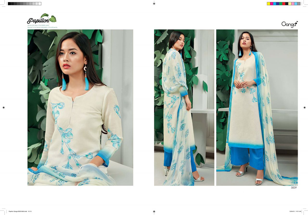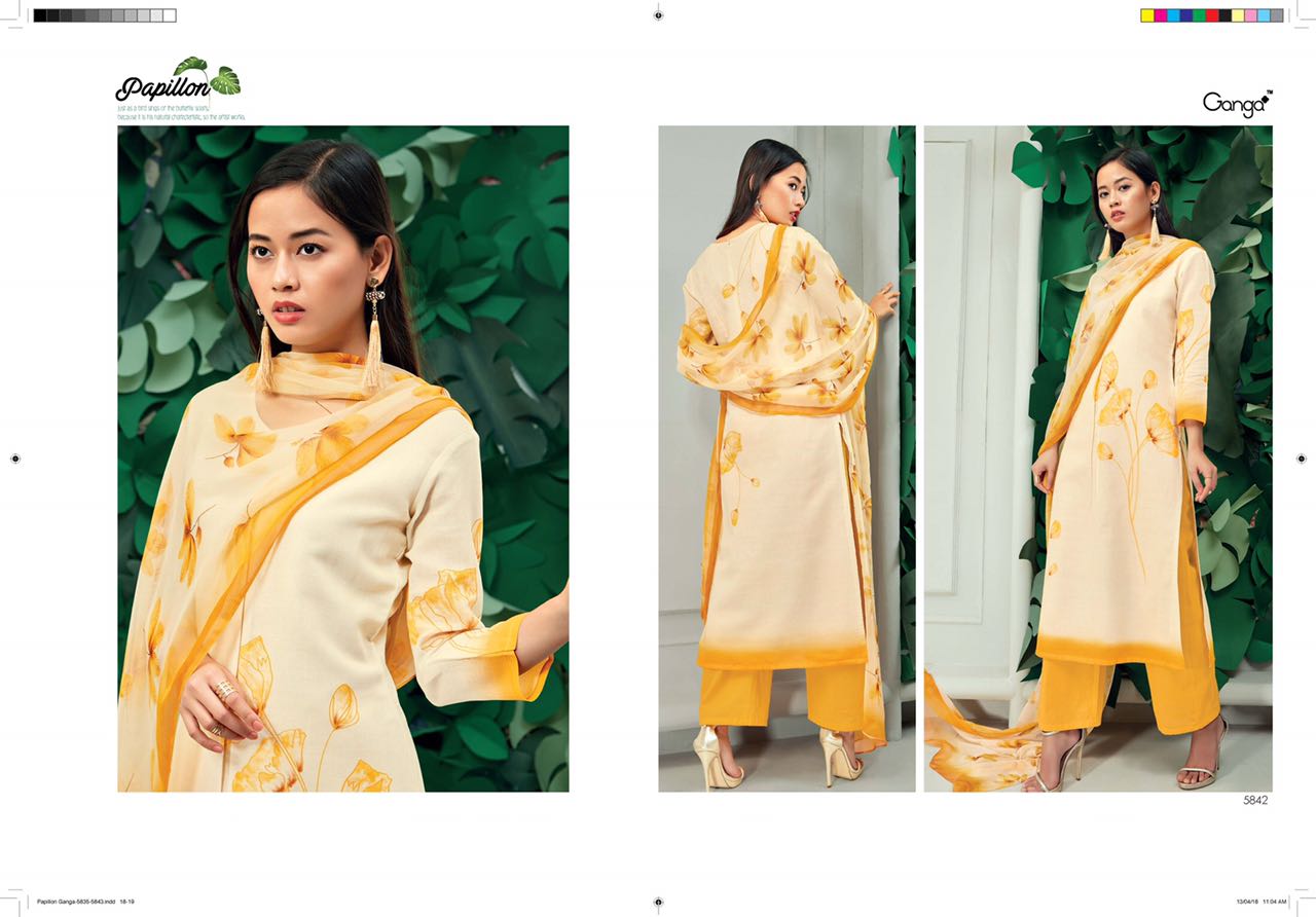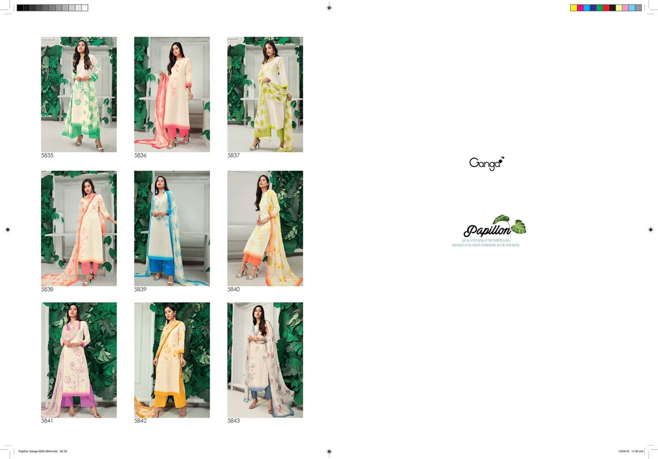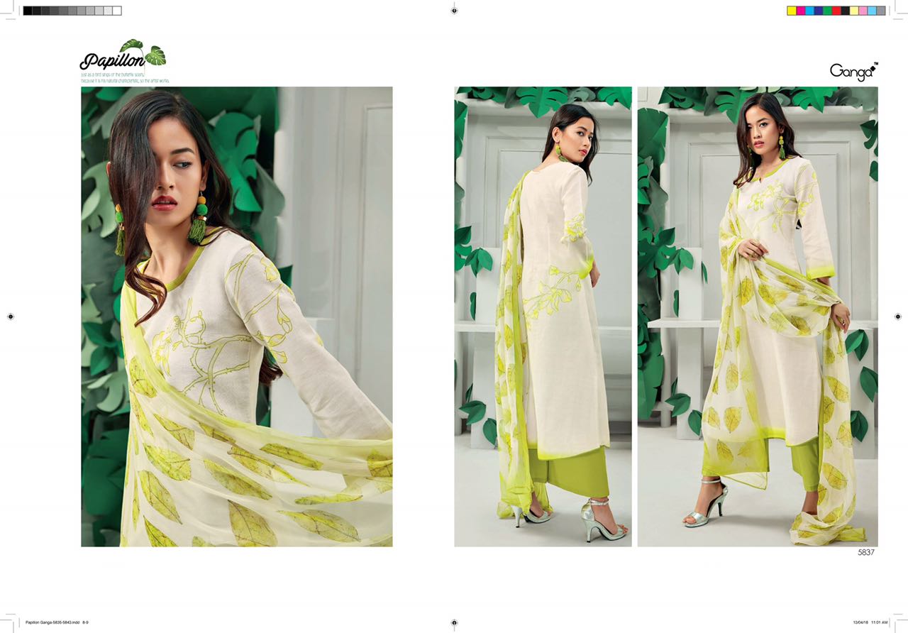 Buy Online Ganga Papillon 5835 Series Linen Digital Print Suit Dealer 9 Pcs of Full Catalogue at Wholesale Price. Looking for Ganga Papillon 5835 Series Linen Digital Print Suit Dealer Full Catalouge at Best Price? Buy Now Ganga Papillon 5835 Series Linen Digital Print Suit Dealer at Wholesale Rate of Rs 13905 with Total 9 Pcs from authroized dealer and supplier of GANGA Brand. Cost of Each piece is just only Rs 1545 which is very low and affordable price to resale the product in your retail store ,This is Surat based Wholesale Supplier & Dealer of GANGA Brand. Click on Brand name to Know more about GANGA Brand's products.Call or Whatsapp on 9898838984 for booking or enquiry