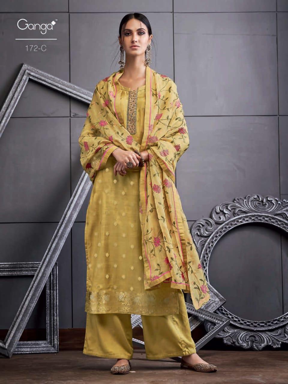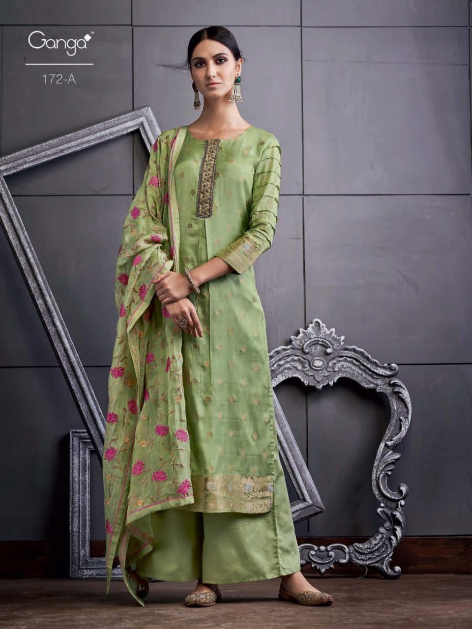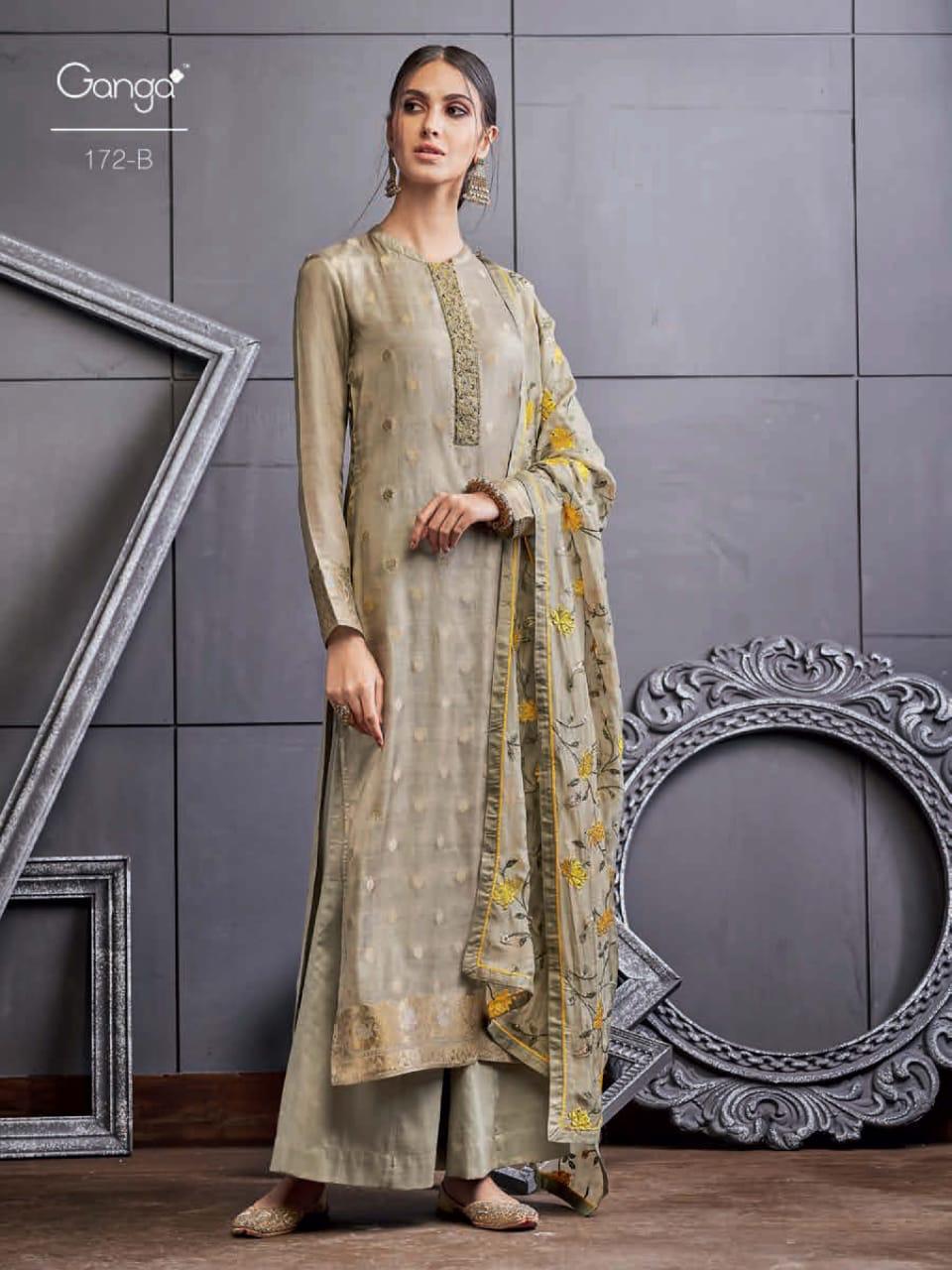 Buy Online Ganga Series 172 A To 172 D Designer Party Wear Suits Wholesale Supplier Gujarat 4 Pcs of Full Catalogue at Wholesale Price. Looking for Ganga Series 172 A To 172 D Designer Party Wear Suits Wholesale Supplier Gujarat Full Catalouge at Best Price? Buy Now Ganga Series 172 A To 172 D Designer Party Wear Suits Wholesale Supplier Gujarat at Wholesale Rate of Rs 12500 with Total 4 Pcs from authroized dealer and supplier of GANGA Brand. Cost of Each piece is just only Rs 3125 which is very low and affordable price to resale the product in your retail store ,This is Surat based Wholesale Supplier & Dealer of GANGA Brand. Click on Brand name to Know more about GANGA Brand's products.Call or Whatsapp on 9898838984 for booking or enquiry