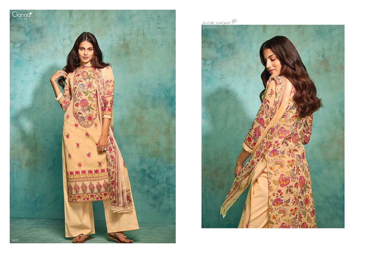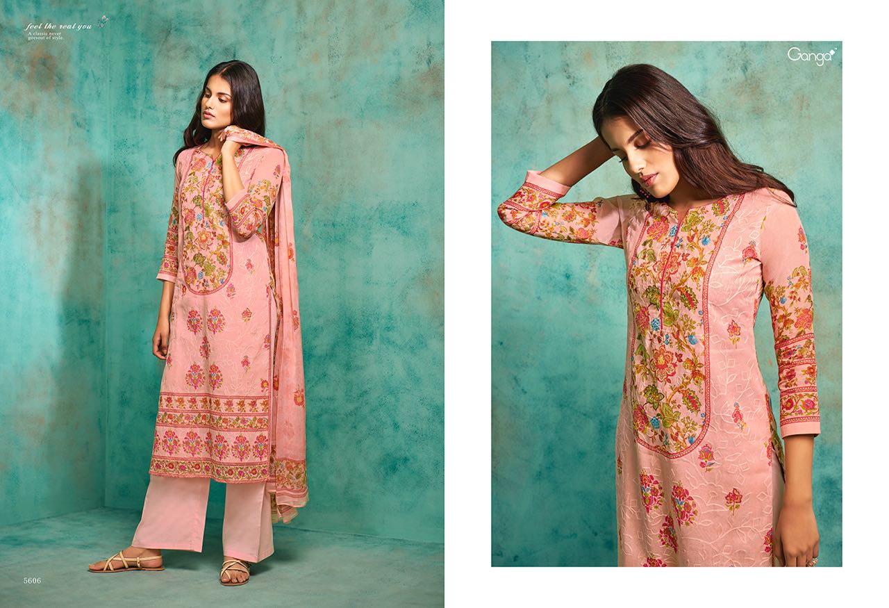 We are launching our new Suit Catalog Brand-GANGA Catalog-VINTAGE Series-5601 to 5609 Set to Set Top organdy Ari Emb with digital printed Bottom cotton solid Dupatta bemberg chiffon printed Rate-1670/- 5%GST Extra Only set to set. |