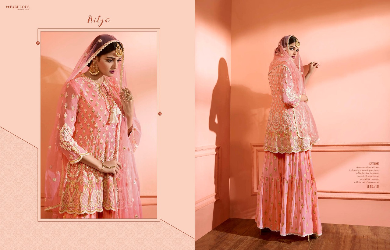Lt nitya has Launched new series 101 to 104 of Garara collection. Fabric details :- Top : georgette Bottom : Georgett. Duptta :- Net heavy embroidary. Rate 1999 per pc. Set to set only. GST 5 Percent Extra. Ready to ship. Book your order ASAP. Regards, LT Fabrics |