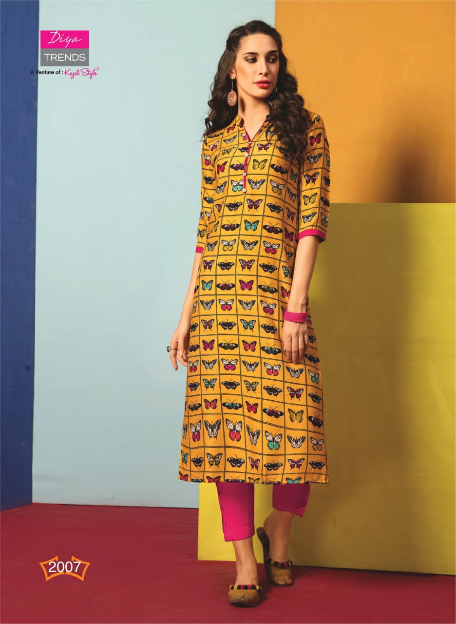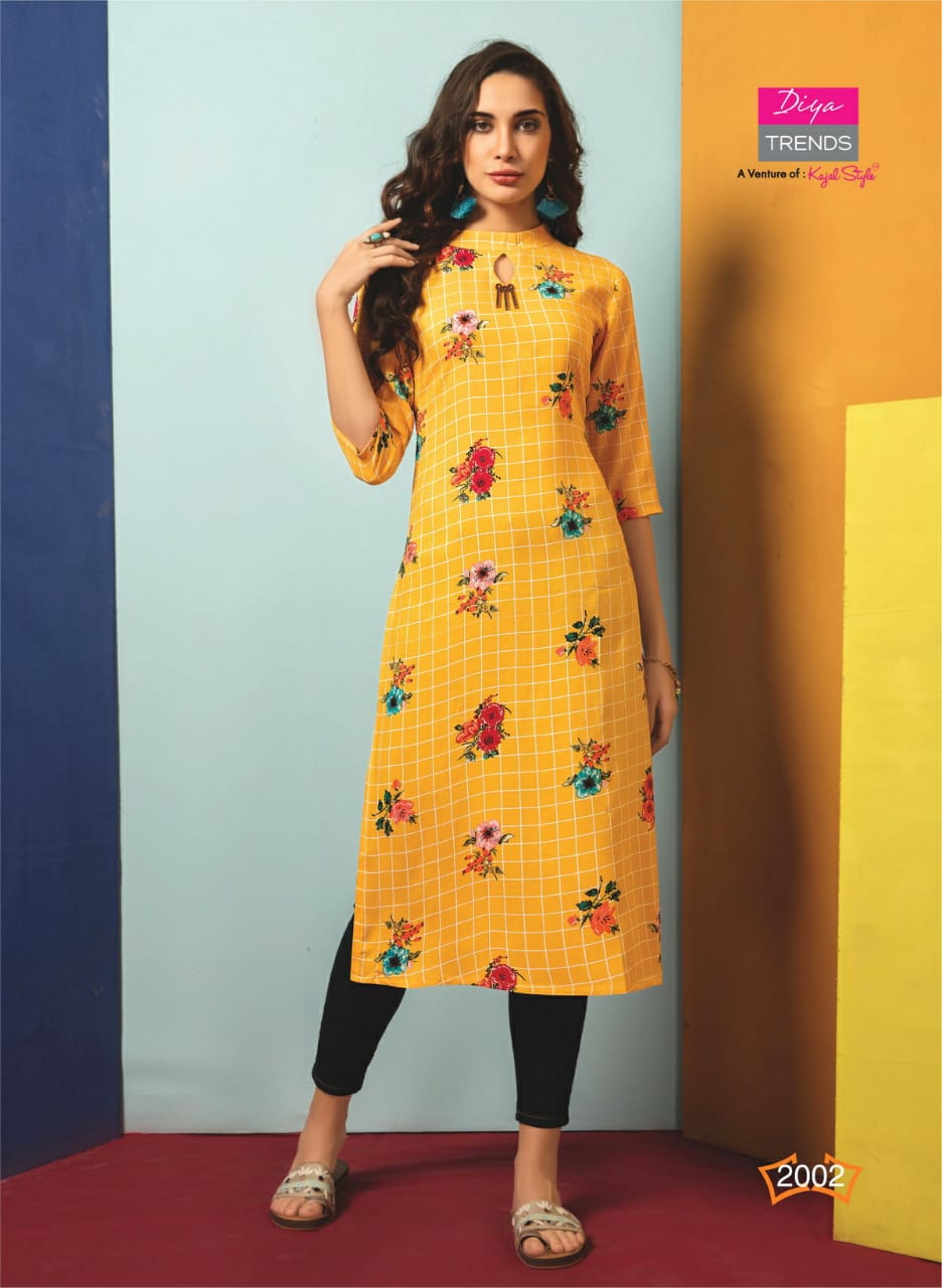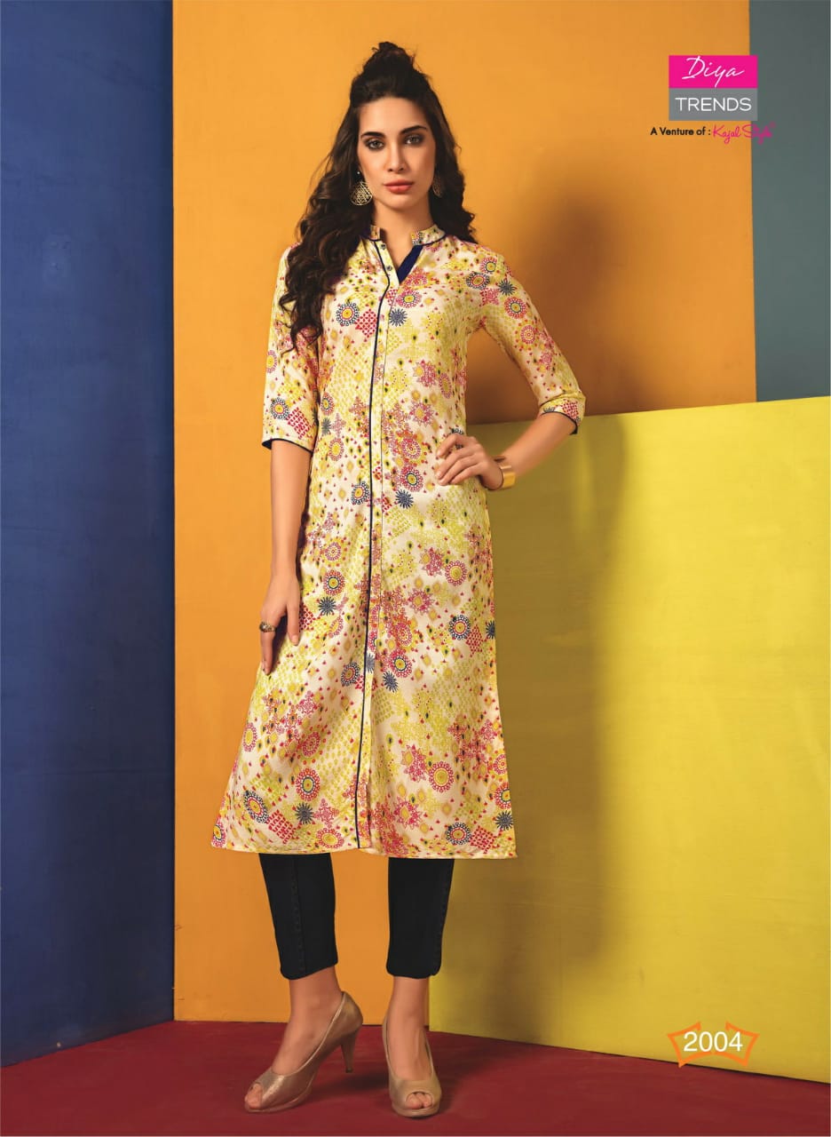 Garden City Vol 2 By Diya Trendz 2001 Series Fancy Heavy Reyon Printed Kurti Catlog Wholesale Dealer Surat