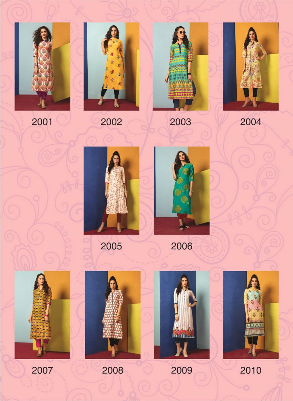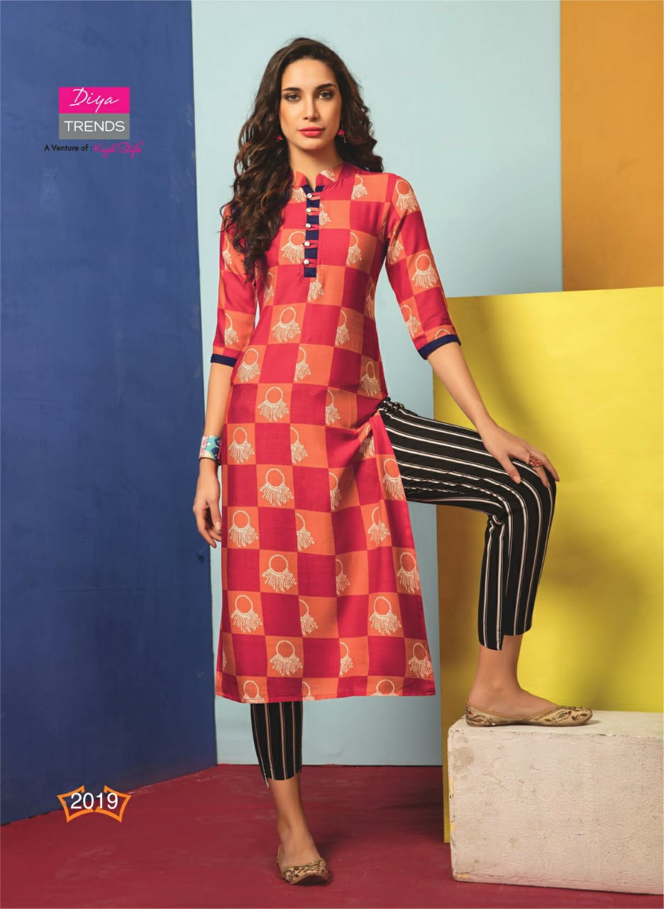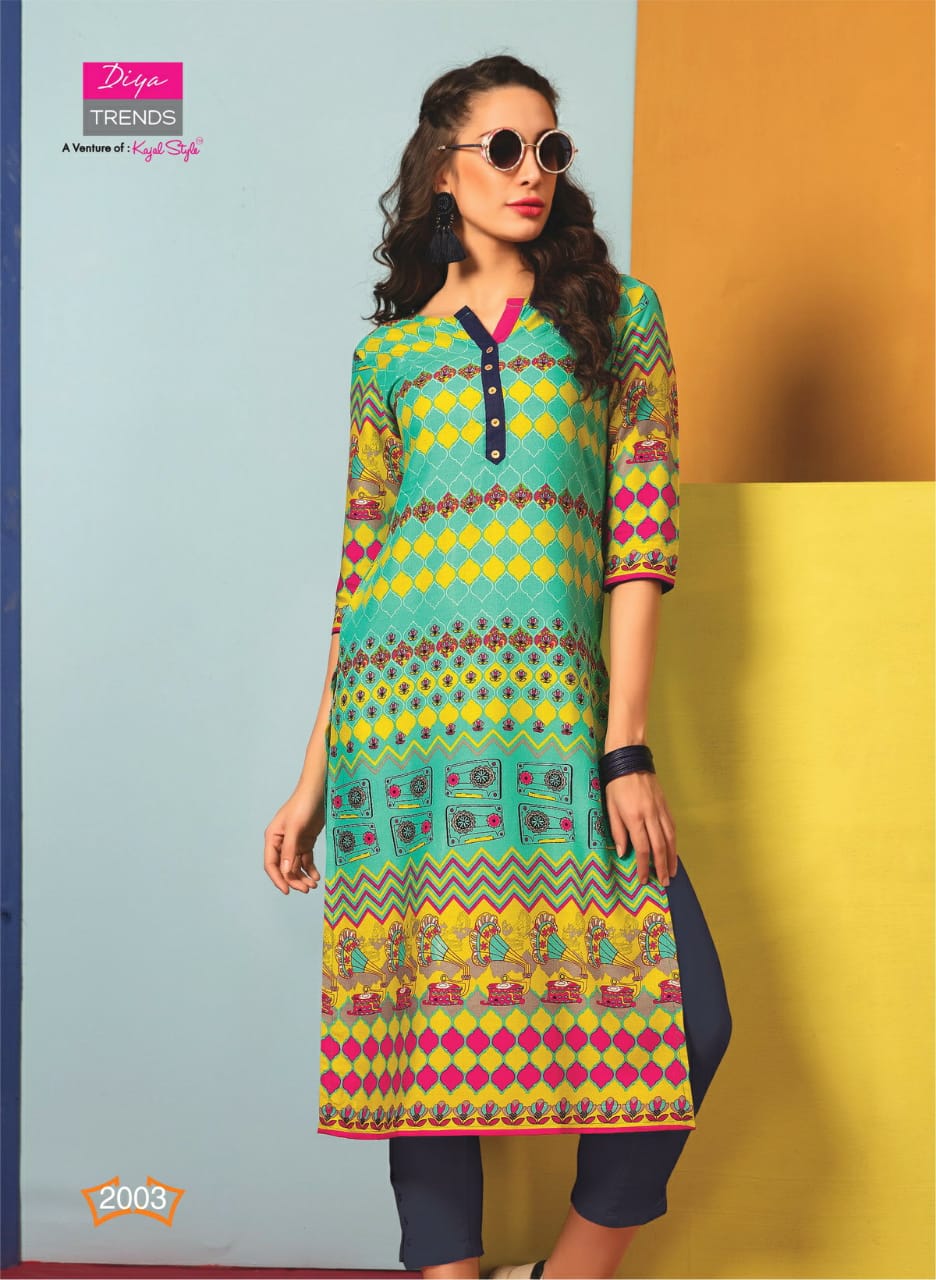 Garden City Vol 2 By Diya Trendz 2001 Series Fancy Heavy Reyon Printed Kurti Catlog Wholesale Dealer Surat