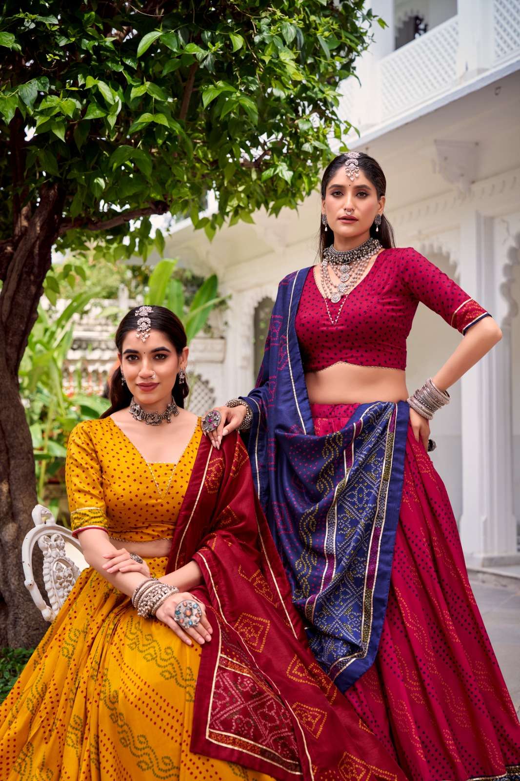 A perfect fusion of bold Bandhani print and regal borders for that Navratri charm 🦚