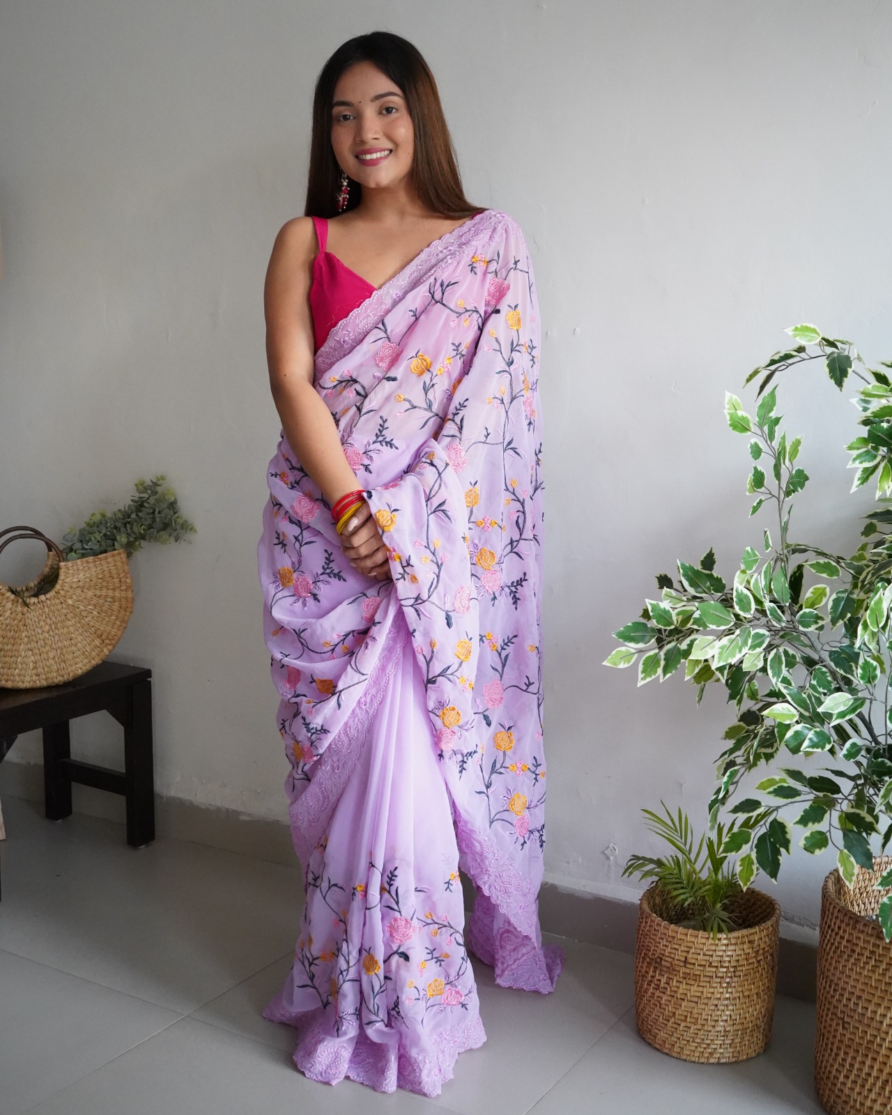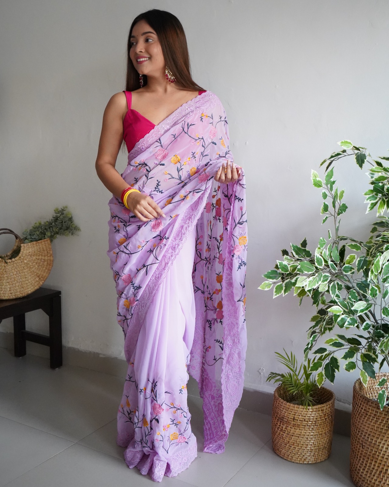 Geeta Georgette Thread Embroidery And Cut Work Border Sarees Collection Surat