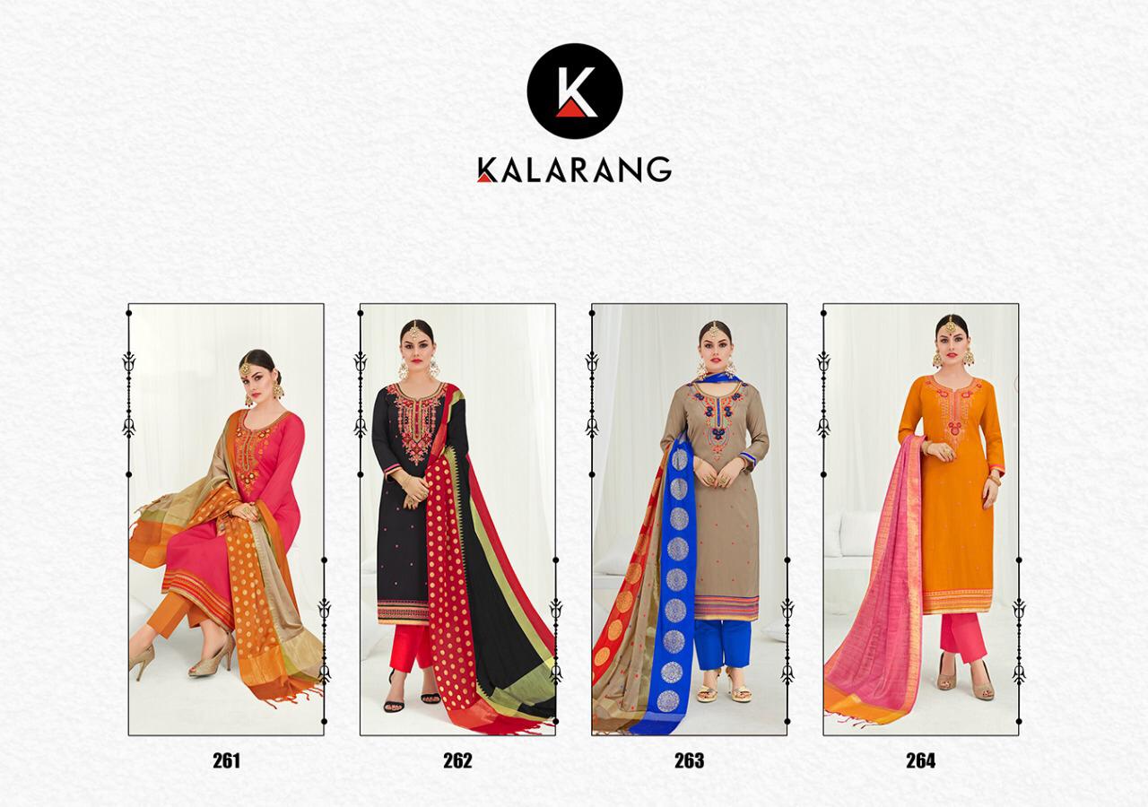 Buy Online Gehna By Kalarang 261 Series Pure Jam Silk Cotton Salwar Kameez Catlog Wholesale Dealer Surat 4 Pcs of Full Catalogue at Wholesale Price. Looking for Gehna By Kalarang 261 Series Pure Jam Silk Cotton Salwar Kameez Catlog Wholesale Dealer Surat Full Catalouge at Best Price? Buy Now Gehna By Kalarang 261 Series Pure Jam Silk Cotton Salwar Kameez Catlog Wholesale Dealer Surat at Wholesale Rate of Rs 4396 with Total 4 Pcs from authroized dealer and supplier of KALARANG Brand. Cost of Each piece is just only Rs 1099 which is very low and affordable price to resale the product in your retail store ,This is Surat based Wholesale Supplier & Dealer of KALARANG Brand. Click on Brand name to Know more about KALARANG Brand's products.Call or Whatsapp on 9898838984 for booking or enquiry