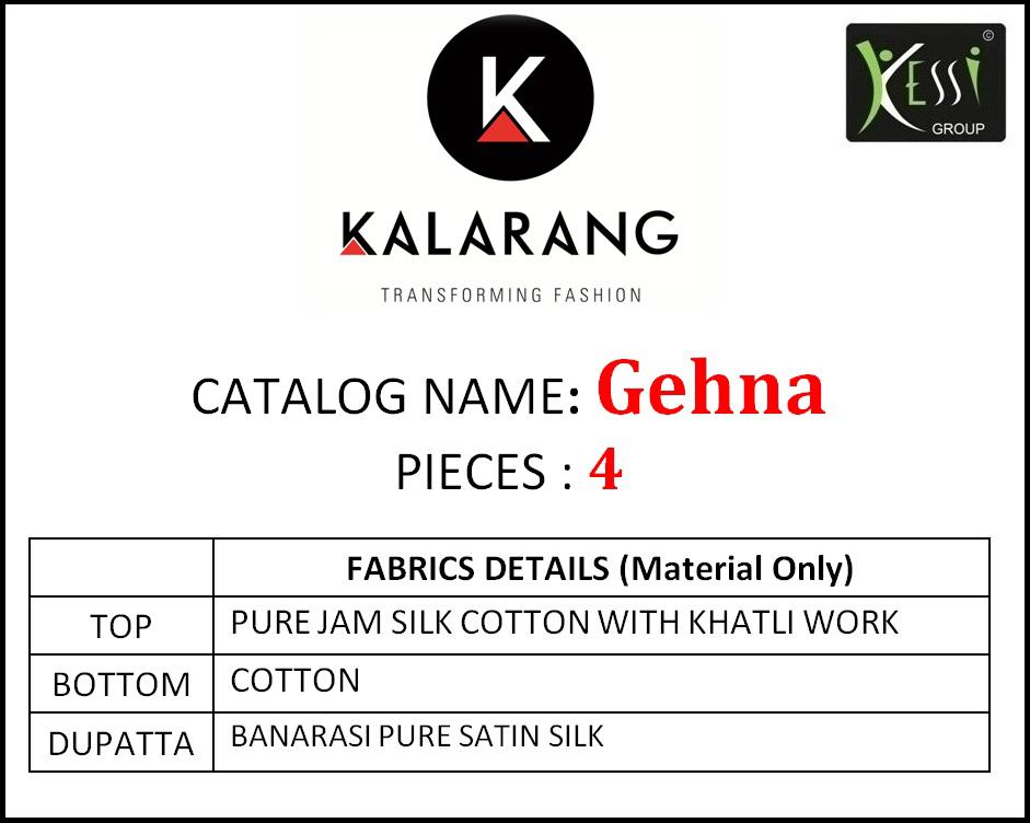 Gehna By Kalarang 261 Series Pure Jam Silk Cotton Salwar Kameez Catlog Wholesale Dealer Surat