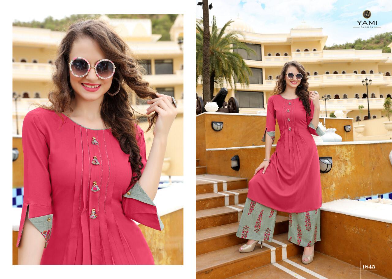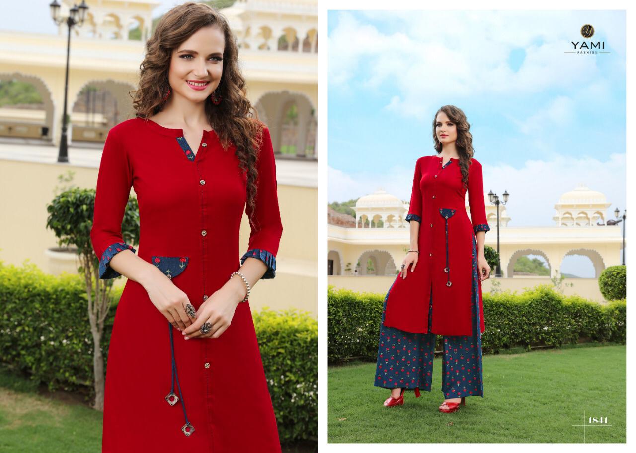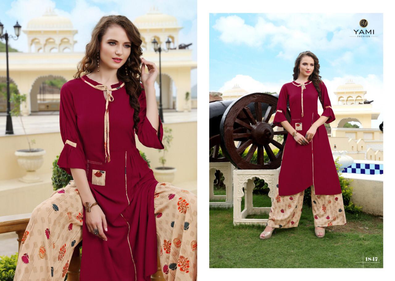 Buy Online Gerua Vol 3 By Yami Fashion Series 1841 To 1849 Kurtis With Plazzo Wholesale Supplier Surat 9 Pcs of Full Catalogue at Wholesale Price. Looking for Gerua Vol 3 By Yami Fashion Series 1841 To 1849 Kurtis With Plazzo Wholesale Supplier Surat Full Catalouge at Best Price? Buy Now Gerua Vol 3 By Yami Fashion Series 1841 To 1849 Kurtis With Plazzo Wholesale Supplier Surat at Wholesale Rate of Rs 6255 with Total 9 Pcs from authroized dealer and supplier of Brand. Cost of Each piece is just only Rs 695 which is very low and affordable price to resale the product in your retail store ,This is Surat based Wholesale Supplier & Dealer of Brand. Click on Brand name to Know more about Brand's products.Call or Whatsapp on 9898838984 for booking or enquiry
