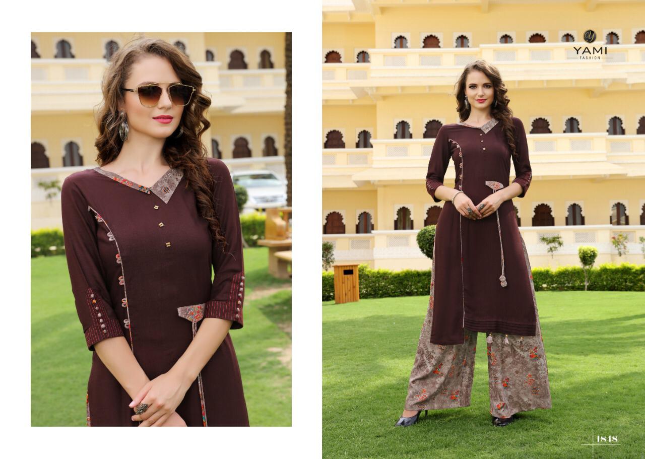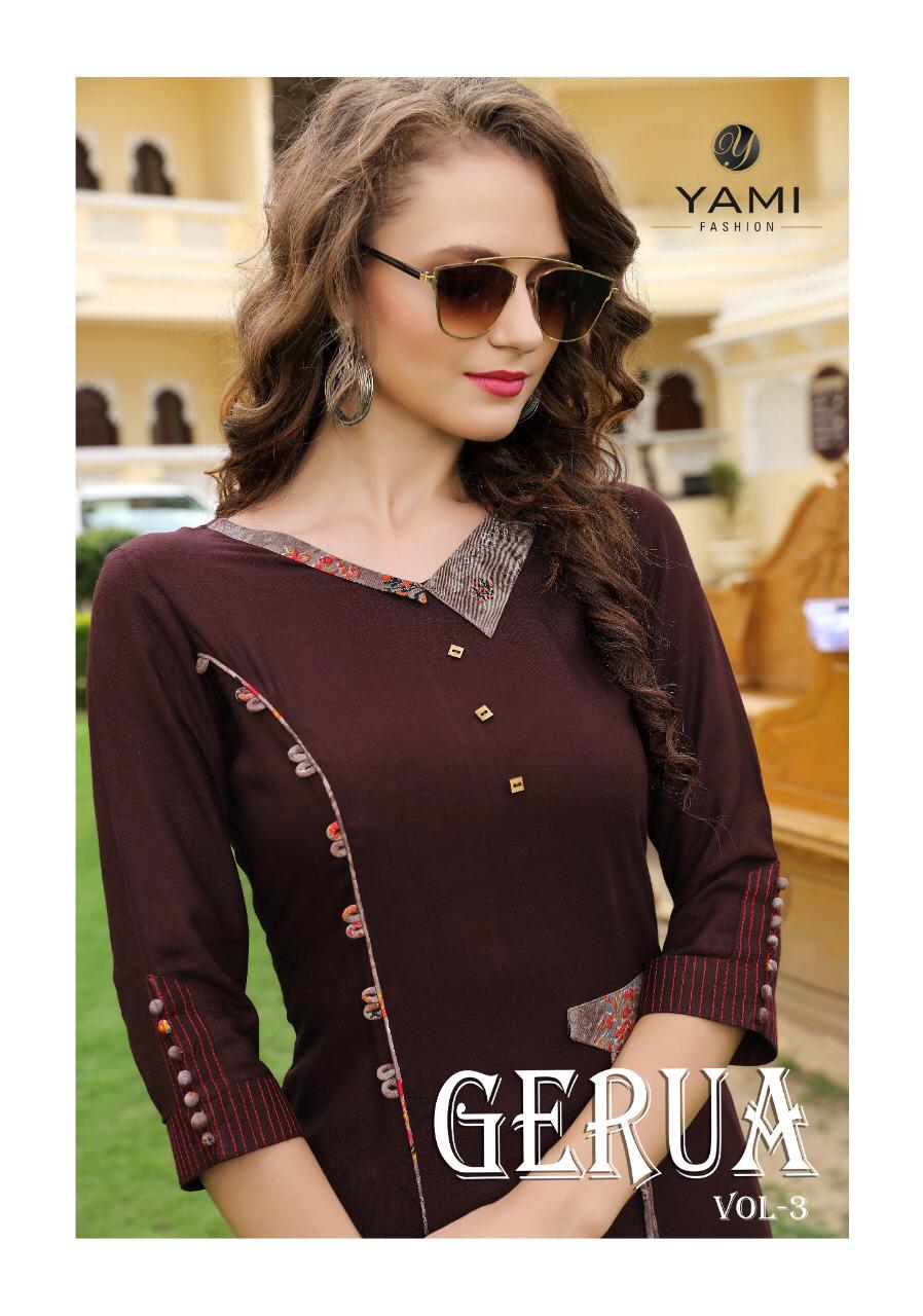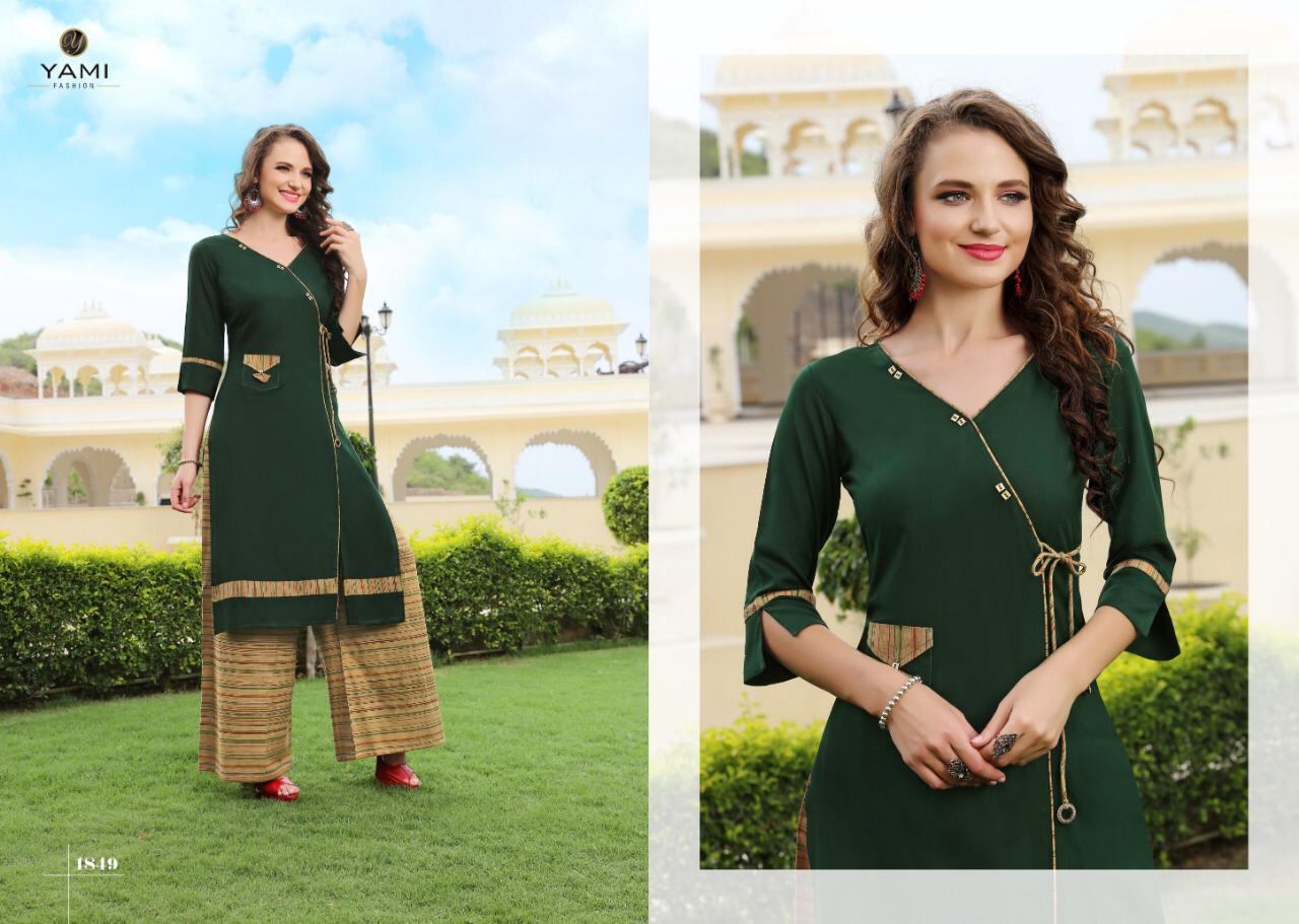 Buy Online Gerua Vol 3 By Yami Fashion Series 1841 To 1849 Kurtis With Plazzo Wholesale Supplier Surat 9 Pcs of Full Catalogue at Wholesale Price. Looking for Gerua Vol 3 By Yami Fashion Series 1841 To 1849 Kurtis With Plazzo Wholesale Supplier Surat Full Catalouge at Best Price? Buy Now Gerua Vol 3 By Yami Fashion Series 1841 To 1849 Kurtis With Plazzo Wholesale Supplier Surat at Wholesale Rate of Rs 6255 with Total 9 Pcs from authroized dealer and supplier of Brand. Cost of Each piece is just only Rs 695 which is very low and affordable price to resale the product in your retail store ,This is Surat based Wholesale Supplier & Dealer of Brand. Click on Brand name to Know more about Brand's products.Call or Whatsapp on 9898838984 for booking or enquiry