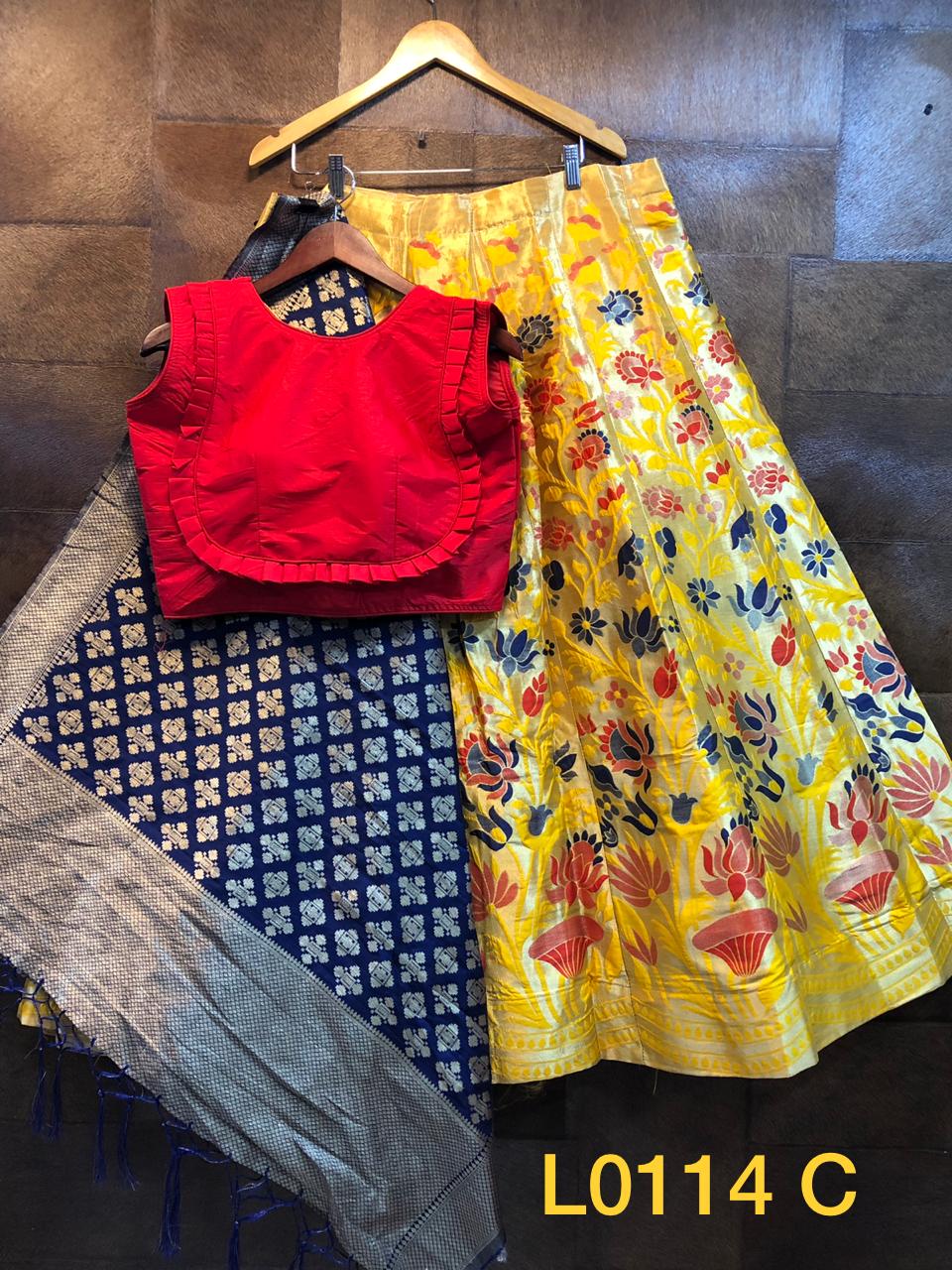 Buy Online Gf L0114 A B C Designer Banarsi Silk Lehnga Collection Wholesaler Surat 3 Pcs of Full Catalogue at Wholesale Price. Looking for Gf L0114 A B C Designer Banarsi Silk Lehnga Collection Wholesaler Surat Full Catalouge at Best Price? Buy Now Gf L0114 A B C Designer Banarsi Silk Lehnga Collection Wholesaler Surat at Wholesale Rate of Rs 7350 with Total 3 Pcs from authroized dealer and supplier of Brand. Cost of Each piece is just only Rs 2450 which is very low and affordable price to resale the product in your retail store ,This is Surat based Wholesale Supplier & Dealer of Brand. Click on Brand name to Know more about Brand's products.Call or Whatsapp on 9898838984 for booking or enquiry