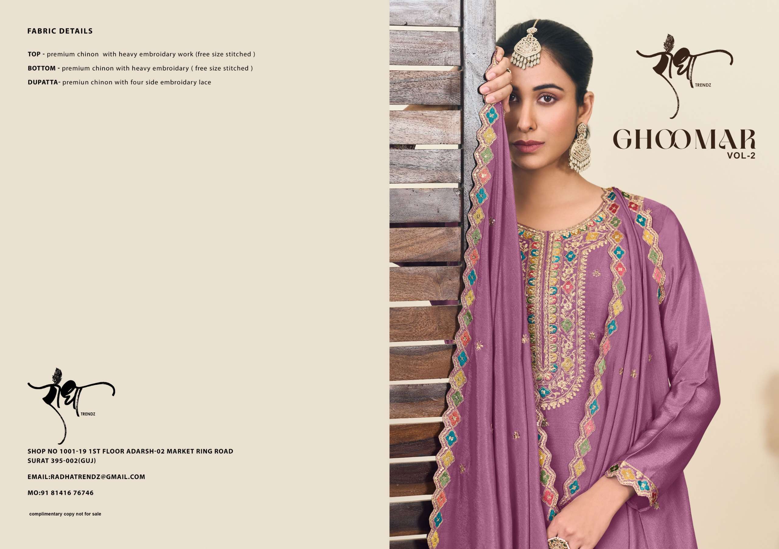 GHOOMAR vol 2 By RADHA TRENDZ PREMIUM chinon suit collection manufacturer surat