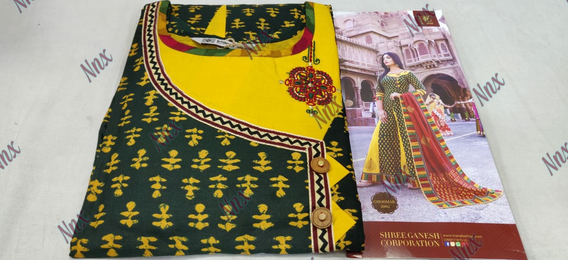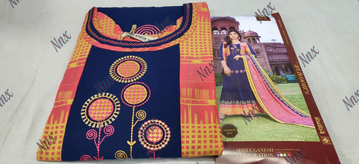 * GHOOMER VOL-2* featured by the celebrities *Heena Achhara* & *Simran Dhiman* *_This Festive season let the light paint you gold and may your attire shines as bright as your smile._* *?KIANA?* *HOUSE OF FASHION* Brings to you, catalogue - *GHOOMER VOL-2* with a special, designer, Long dupatta ,embroiled work ,block print FABRIC:- heavy loan cotton SIZE:- M, L, XL, XXL, 3XL 2002 hit Single 1090+ship Dispatch - Ready to dispatch |