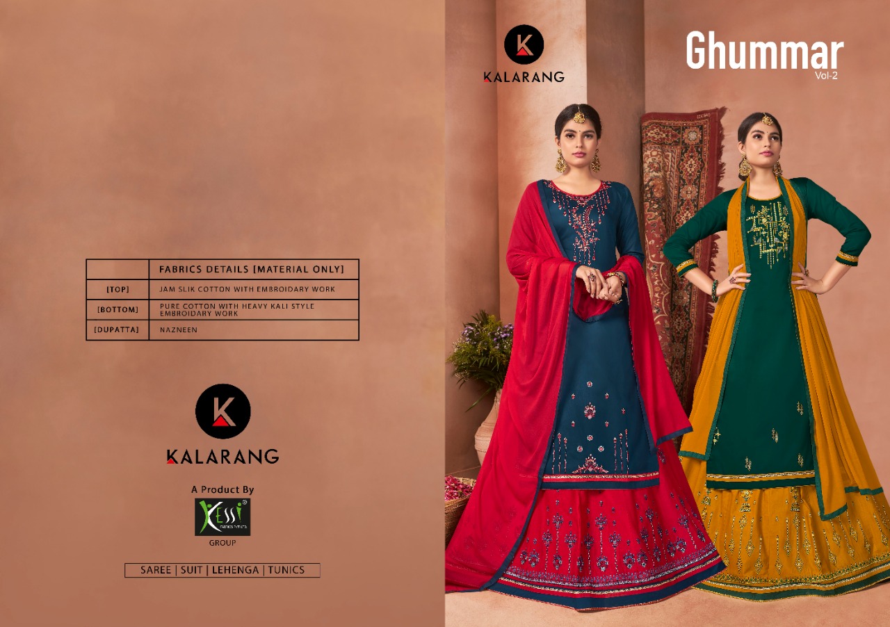 Ghummar Vol 2 By Kalarang Jam Silk Cotton Dress Materials Wholesale Supplier Surat