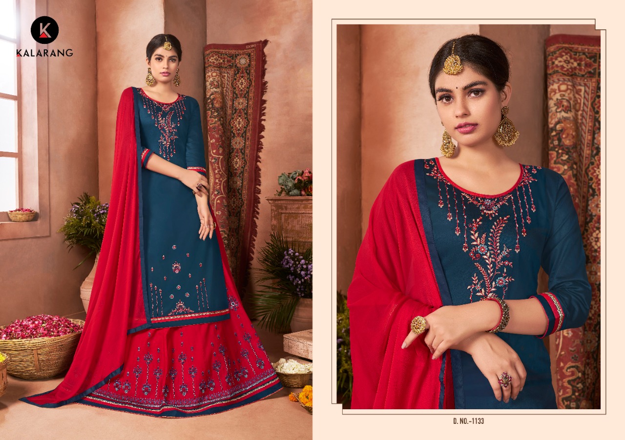 ? *Kalarang.* has launched _Catalog name_ : *Ghummar Vol - 2* ? _Fabric Details_ ? ?Top:- JAM SILK COTTON WITH EMBROIDERY WORK ?Bottom:- PURE COTTON WITH HEAVY KALI STYLE EMBROIDERY WORK ?Dupatta:- NAZNEEN ?Total Design:- 4 Rate 1099 |