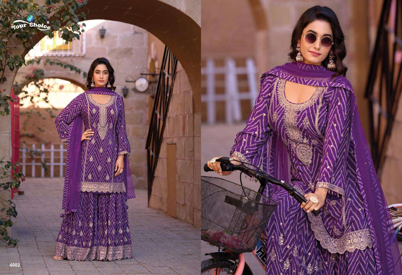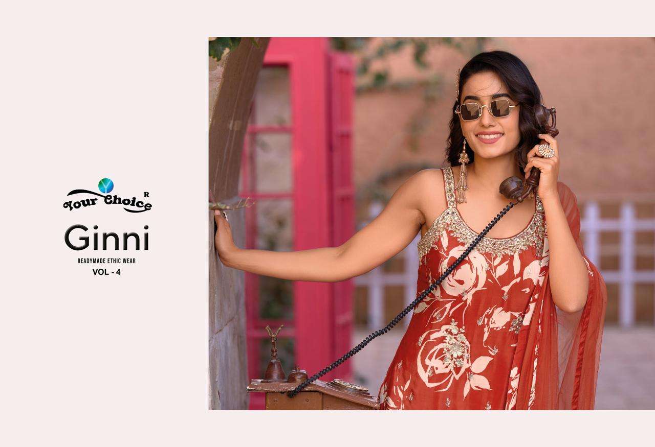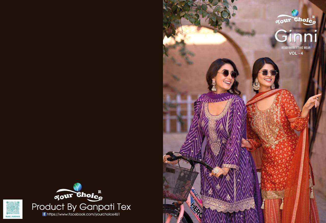 Buy Online GINNI 4 by Your choice Heavy Chinon suit collection manufacturer surat 4 Pcs of Full Catalogue at Wholesale Price. Looking for GINNI 4 by Your choice Heavy Chinon suit collection manufacturer surat Full Catalouge at Best Price? Buy Now GINNI 4 by Your choice Heavy Chinon suit collection manufacturer surat at Wholesale Rate of Rs 6796 with Total 4 Pcs from authroized dealer and supplier of YOUR CHOICE Brand. Cost of Each piece is just only Rs 1699 which is very low and affordable price to resale the product in your retail store ,This is Surat based Wholesale Supplier & Dealer of YOUR CHOICE Brand. Click on Brand name to Know more about YOUR CHOICE Brand's products.Call or Whatsapp on 9898838984 for booking or enquiry