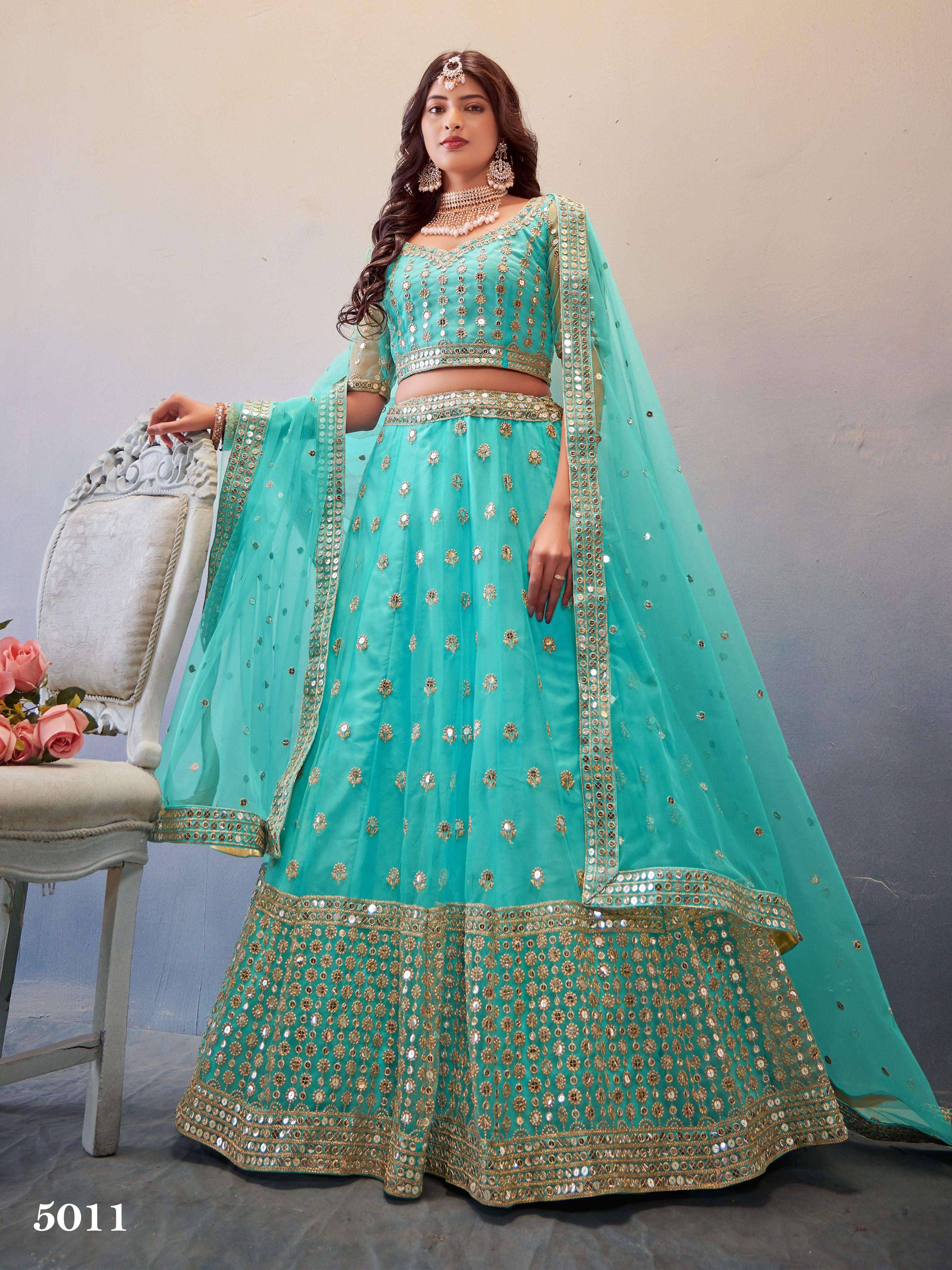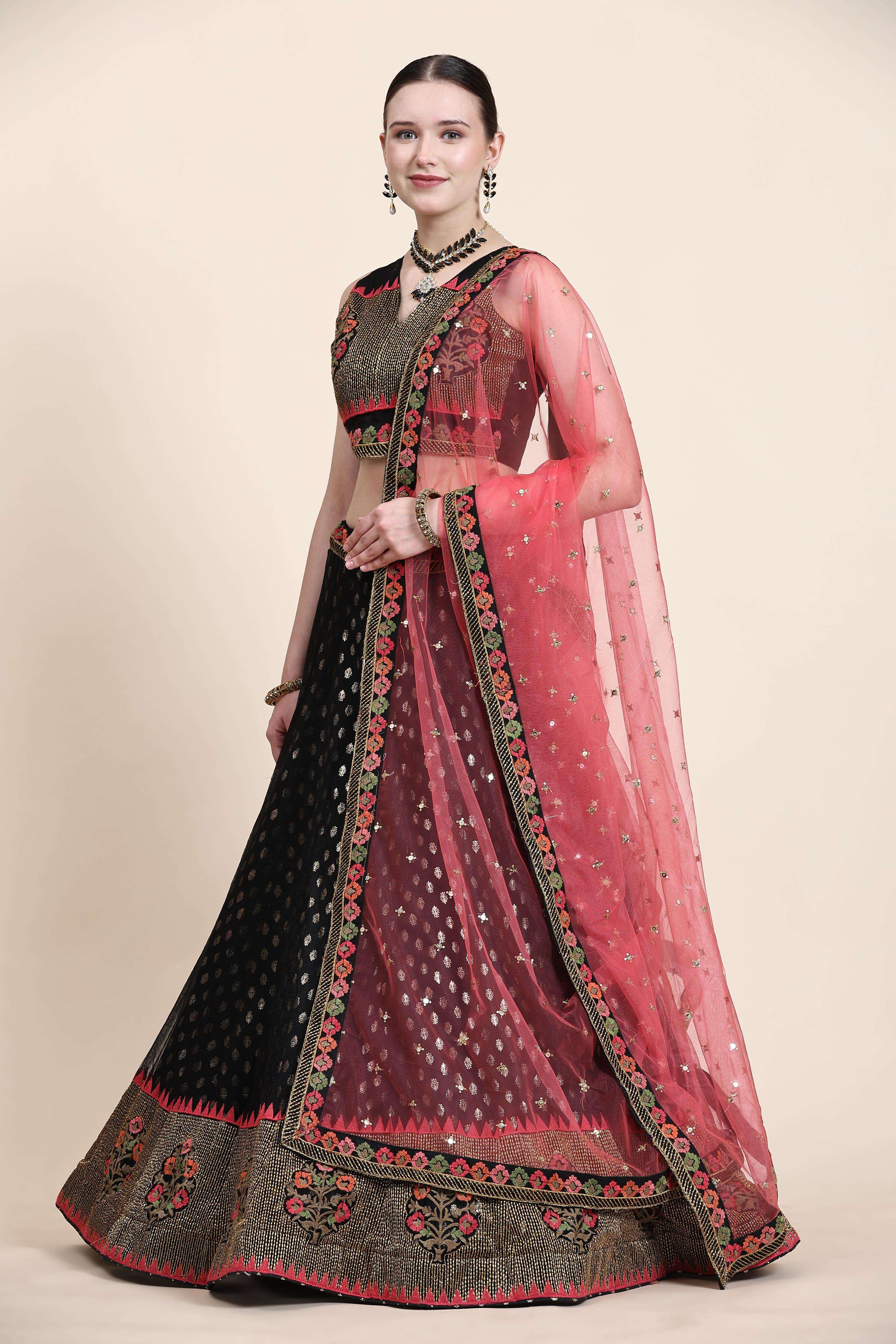 *GIRLISH LEHENGA CHOLI FOR WEDDING AND RECEPTION* *Series: MIX Lehengas* *Key Features:* - 3.5 METER flair - EMBROIDERY - Mirror work JECARD WORK - for special occasions: - Engagement - Wedding - Siders - Pre-wedding parties