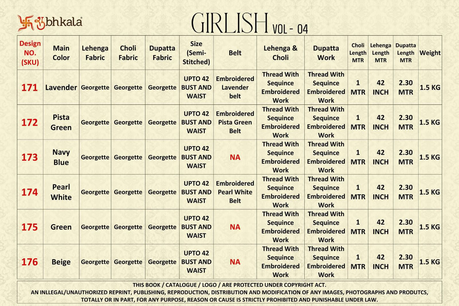 Buy Online Girlish Vol 4 By Shubhkala Exclusive Embroidery Semi Stitched Velvet Lehengacholi 6 Pcs of Full Catalogue at Wholesale Price. Looking for Girlish Vol 4 By Shubhkala Exclusive Embroidery Semi Stitched Velvet Lehengacholi Full Catalouge at Best Price? Buy Now Girlish Vol 4 By Shubhkala Exclusive Embroidery Semi Stitched Velvet Lehengacholi at Wholesale Rate of Rs 19800 with Total 6 Pcs from authroized dealer and supplier of Brand. Cost of Each piece is just only Rs 3300 which is very low and affordable price to resale the product in your retail store ,This is Surat based Wholesale Supplier & Dealer of Brand. Click on Brand name to Know more about Brand's products.Call or Whatsapp on 9898838984 for booking or enquiry