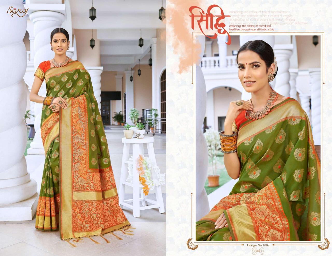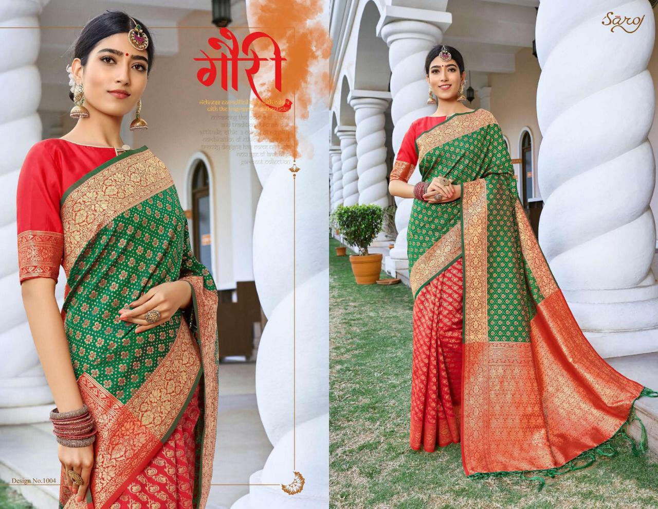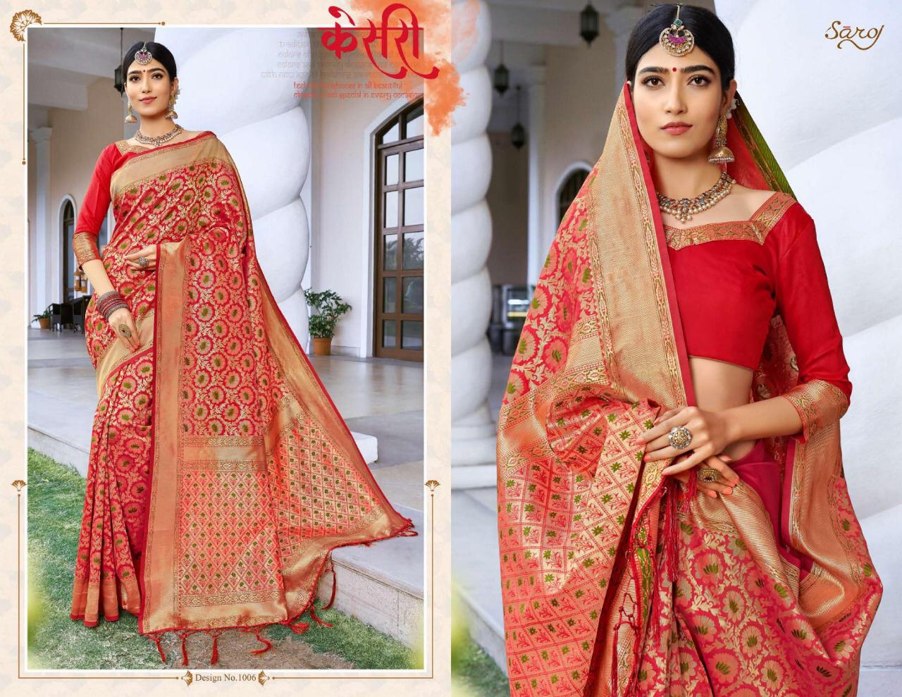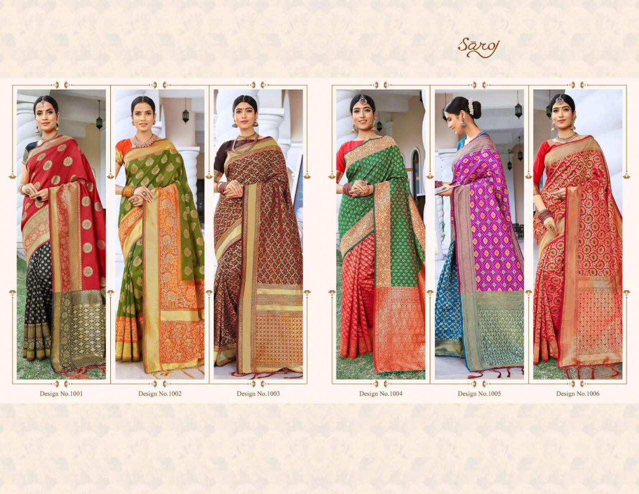 Buy Online Gitanjali By Saroj Series 1001 To 1006 Banarasi Silk Sarees Wholesale Supplier Gujarat 6 Pcs of Full Catalogue at Wholesale Price. Looking for Gitanjali By Saroj Series 1001 To 1006 Banarasi Silk Sarees Wholesale Supplier Gujarat Full Catalouge at Best Price? Buy Now Gitanjali By Saroj Series 1001 To 1006 Banarasi Silk Sarees Wholesale Supplier Gujarat at Wholesale Rate of Rs 7890 with Total 6 Pcs from authroized dealer and supplier of SAROJ SAREE Brand. Cost of Each piece is just only Rs 1315 which is very low and affordable price to resale the product in your retail store ,This is Surat based Wholesale Supplier & Dealer of SAROJ SAREE Brand. Click on Brand name to Know more about SAROJ SAREE Brand's products.Call or Whatsapp on 9898838984 for booking or enquiry