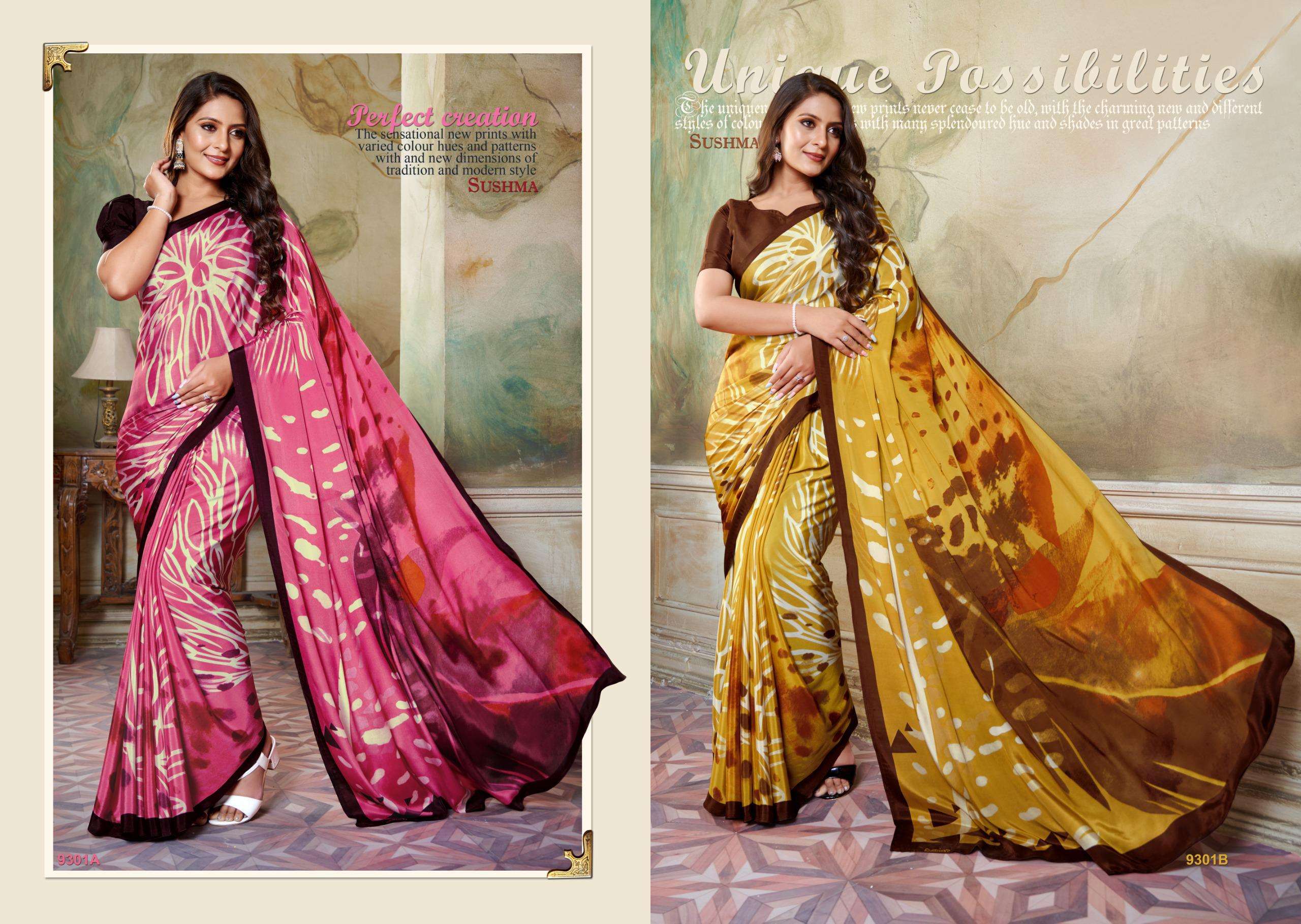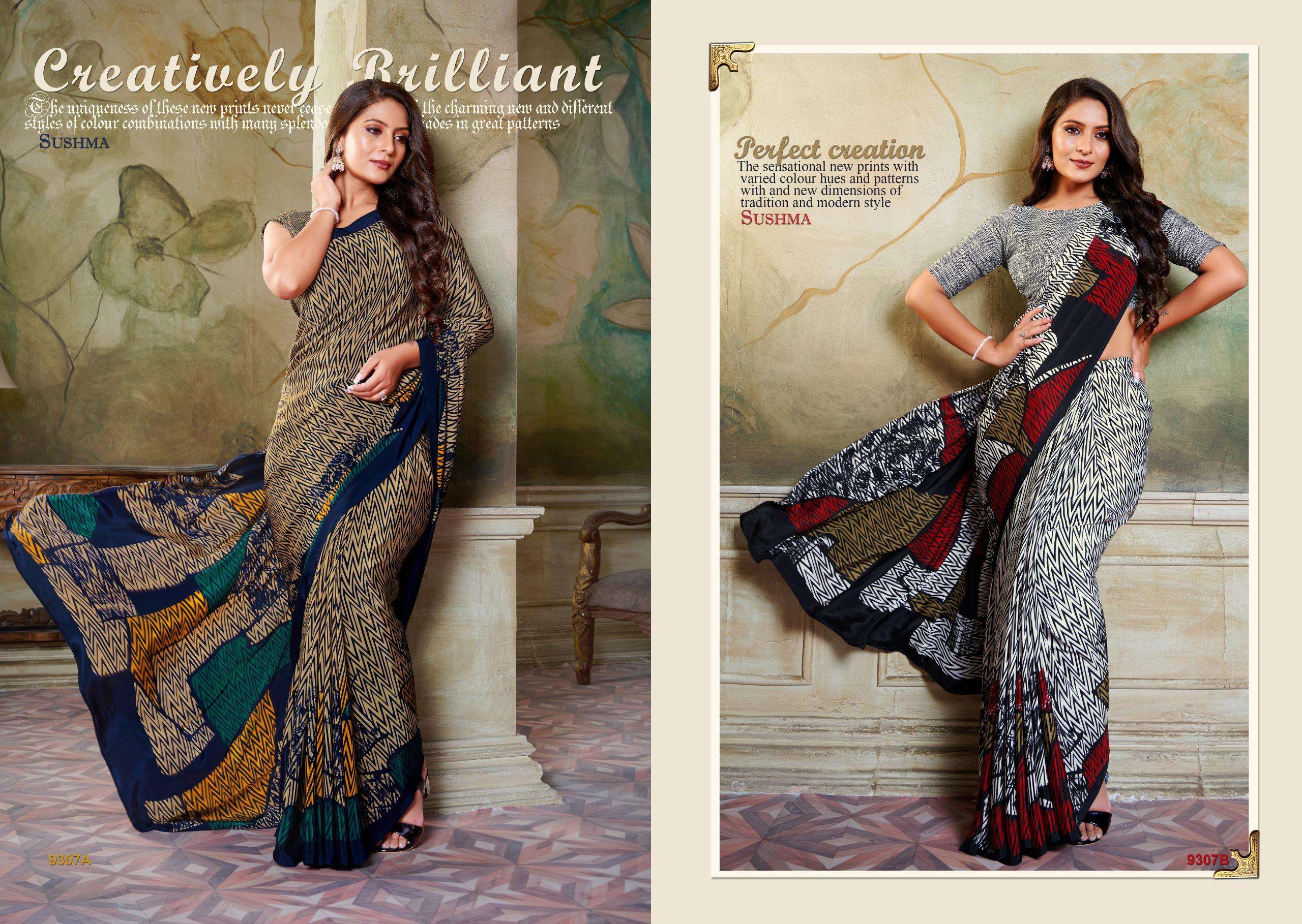 Buy Online GLAM by Brand Sushma PRINTED saree creation manufacturer surat 18 Pcs of Full Catalogue at Wholesale Price. Looking for GLAM by Brand Sushma PRINTED saree creation manufacturer surat Full Catalouge at Best Price? Buy Now GLAM by Brand Sushma PRINTED saree creation manufacturer surat at Wholesale Rate of Rs 11070 with Total 18 Pcs from authroized dealer and supplier of Sushma Saree Brand. Cost of Each piece is just only Rs 615 which is very low and affordable price to resale the product in your retail store ,This is Surat based Wholesale Supplier & Dealer of Sushma Saree Brand. Click on Brand name to Know more about Sushma Saree Brand's products.Call or Whatsapp on 9898838984 for booking or enquiry